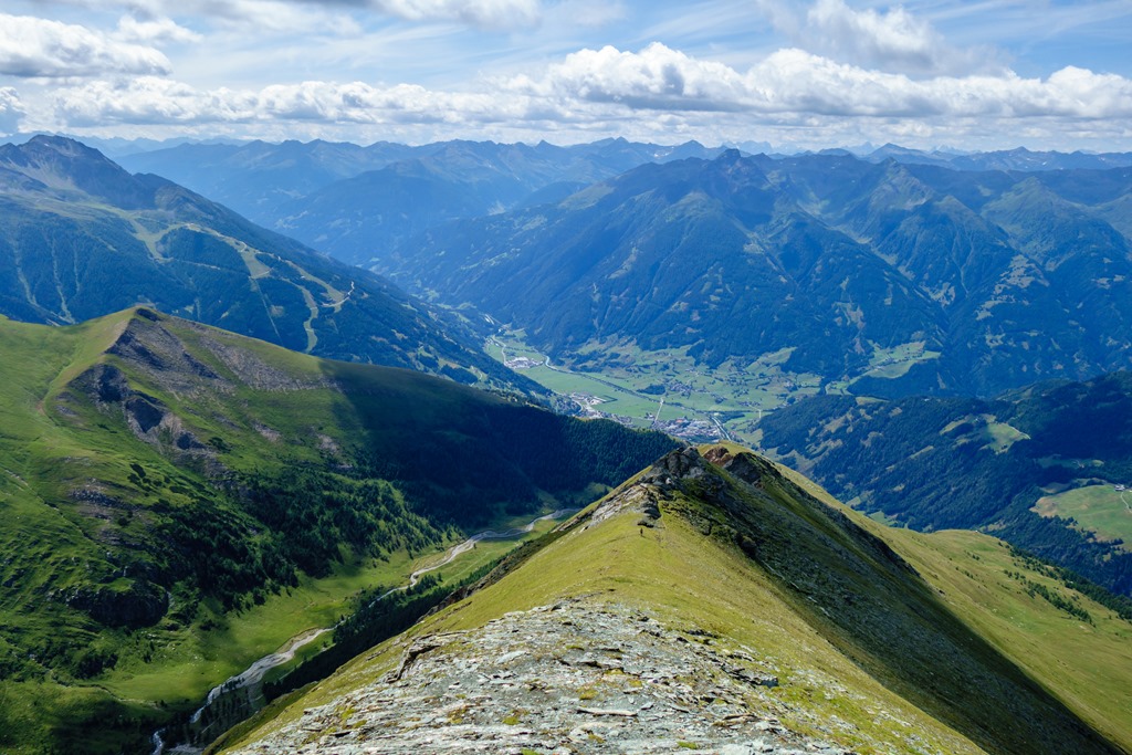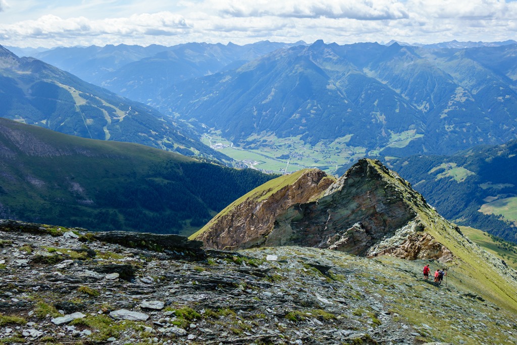 A balodali hegy a Nussing, jobbra a Bretterwandspitze, szemben kettejük között a Wellachköpfe, alatta az Edelweißwiese látható (tavalyi kép a Zunigalmról)