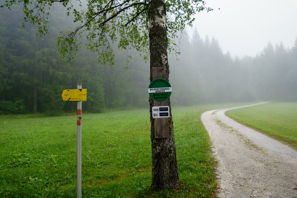 7:40-kor indulok aznapi körutamra. Az első 300 méteren követem csak a hivatalosan jelölt turistautat, majd ennél a táblánál (fenti kép) folytatom egyenesen. Ha minden szerencsésen alakul, akkor a délutáni órákban majd az Alplgrabenben vezető, itt balra kanyarodó úton érkezem vissza.