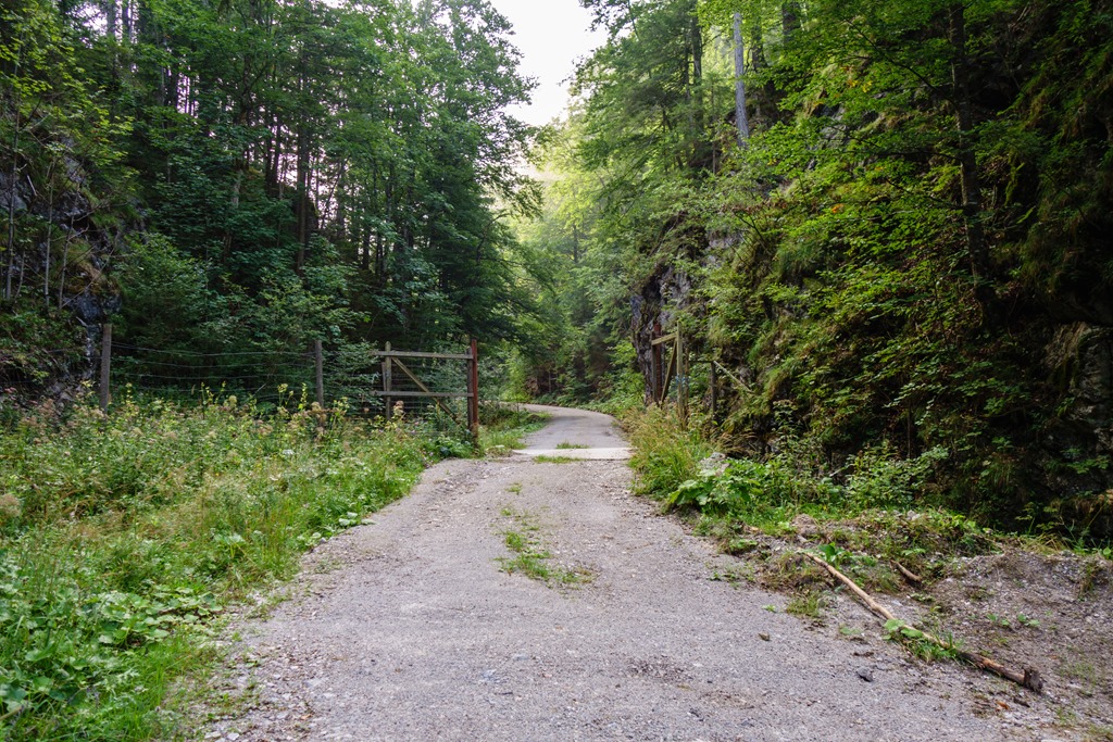 “Az ismeretlen Schneealpe” túra-projektem keretében még két új csúcsot is beseperhetek a gyűjteményembe. Régen tervezem már a Höllgrabenon át feljutni Schneealpe platójára. Az árok az év három hónapjában, júliusban, augusztusban és szeptemberben nyitva, egyébként pedig vadetetés címén tilos a belépés. Kapuk, kerítések védik (lenti kép).