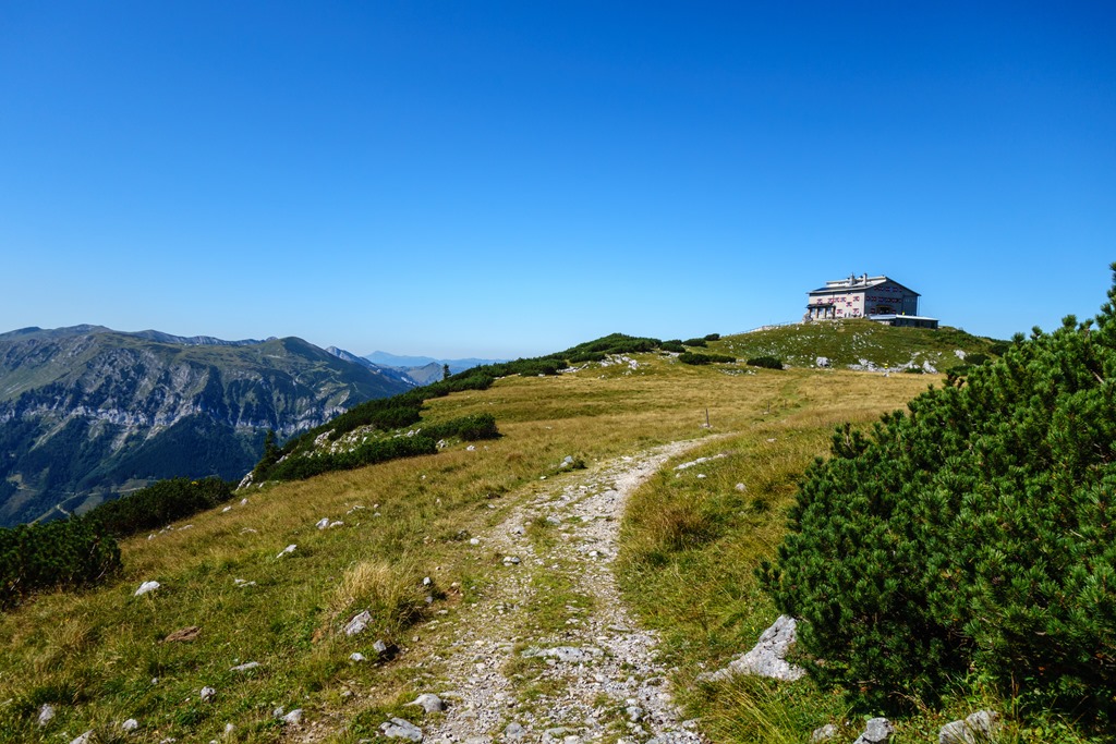 A Bärengrabenból egy tisztásra kiérve (12:30) balra fordul az út menete az Ochsenhaltwegen, ami az Ottohausig visz. 13:10 órakor érkezem a vendégházhoz, melynek napsütötte teraszán átadom magam az elektrolitok és kalóriák pótlása élvezetének. Igaz, itt-ott kellemetlenkedik a hűvös déli szél, de egy pulcsiban mégis kellemes a ragyogó napon ücsörögni egy sort.