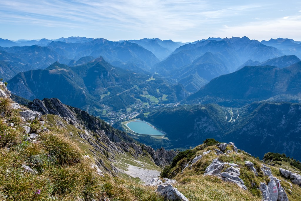 Pillantás Heiflau irányába, odalenn egy erőmű víztározója. A távolban a Hochschwab