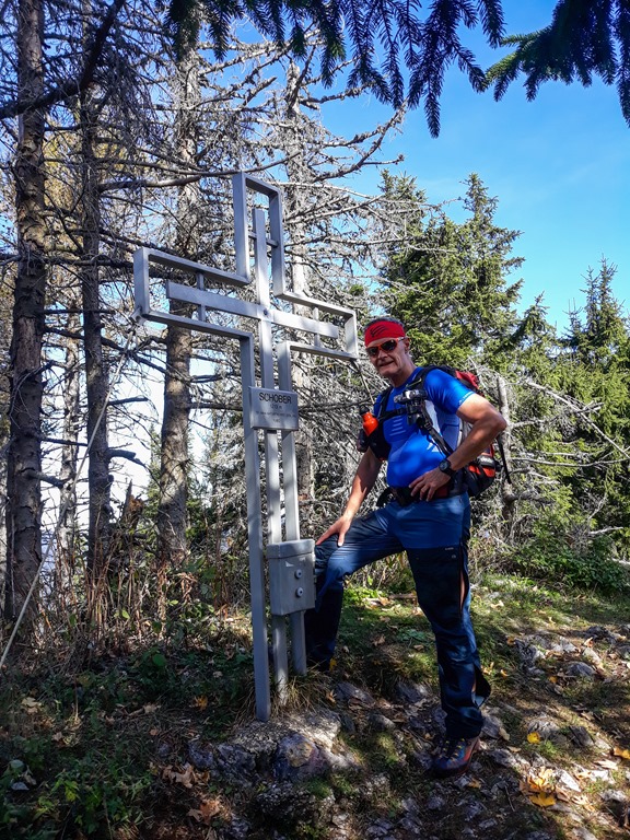 11:52-kor érkezünk a kilátástól fosztott, de kisebbfajta csúcskereszttel mégis ellátott Schoberre. Némi elektrolitpótlás után kiérünk a Schober nyugati gerincére, ahol viszont már akadálytalanul lehet gyönyörködni a Schneeberggel koronázott tájban.