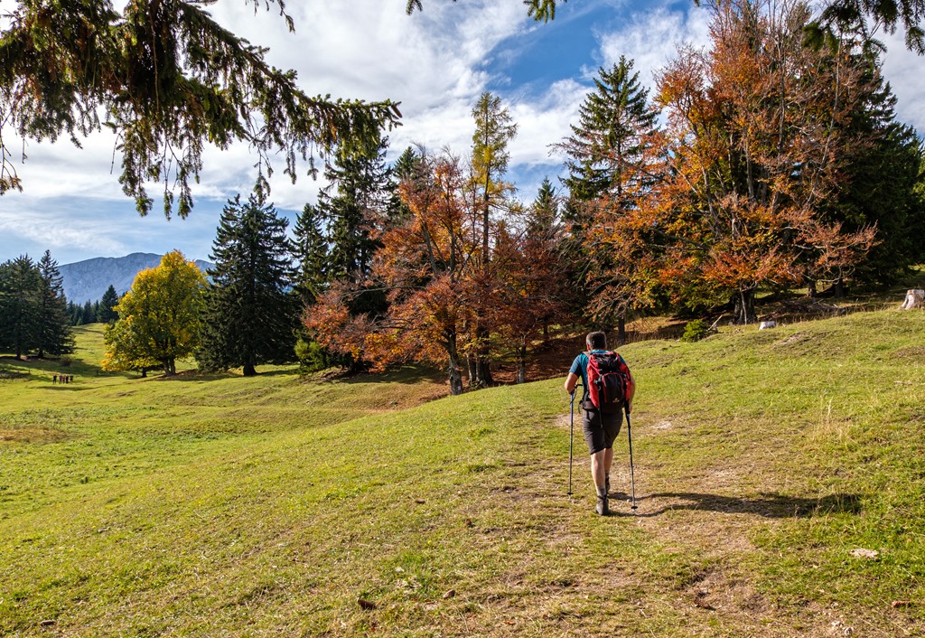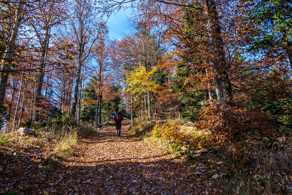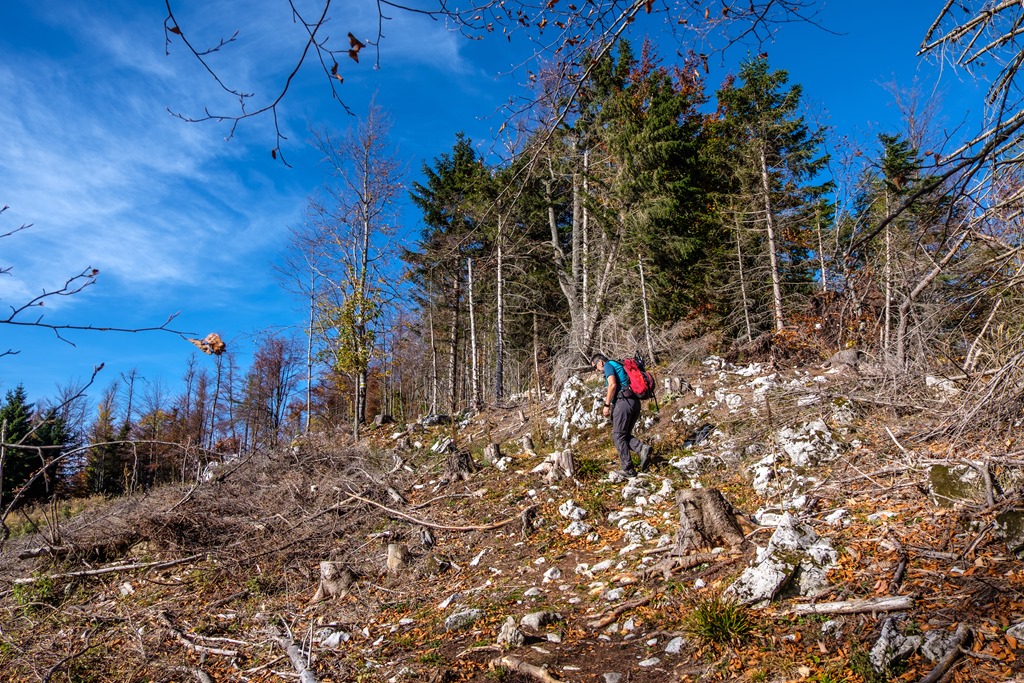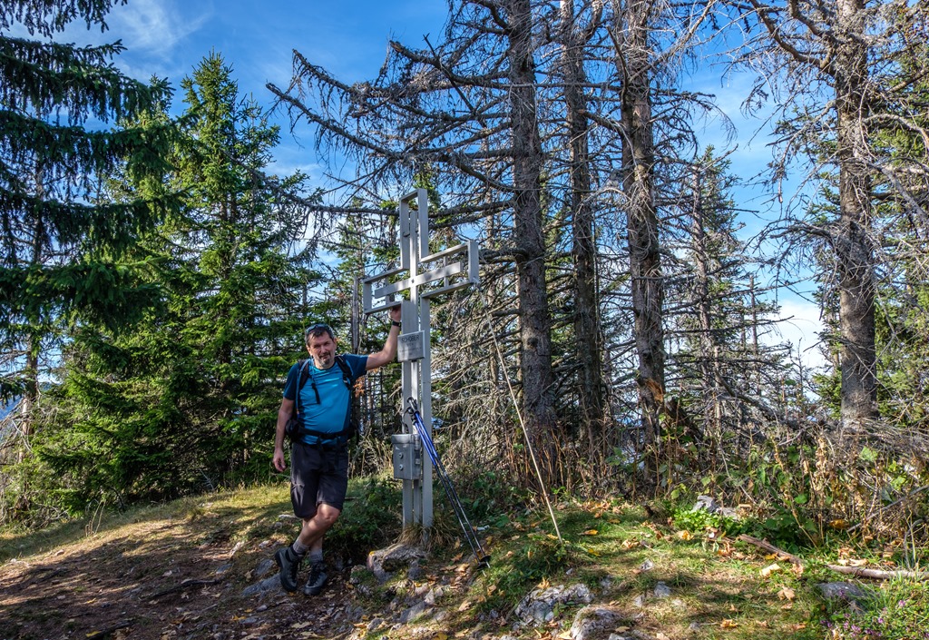 Lepihenünk tízóraizni az ott található padra és szemünkkel is falni ezt csodás panorámát. Bármennyire is marasztal még az idő, tovább kell állnunk, vár következő csúcsunk az 1213 méter magas Schober. A két hegy közti nyeregbe való alászállás közben elkel némi jártasság a meredek lejtőkön való ereszkedés tekintetében. Túrabotok alkalmazása ajánlott.