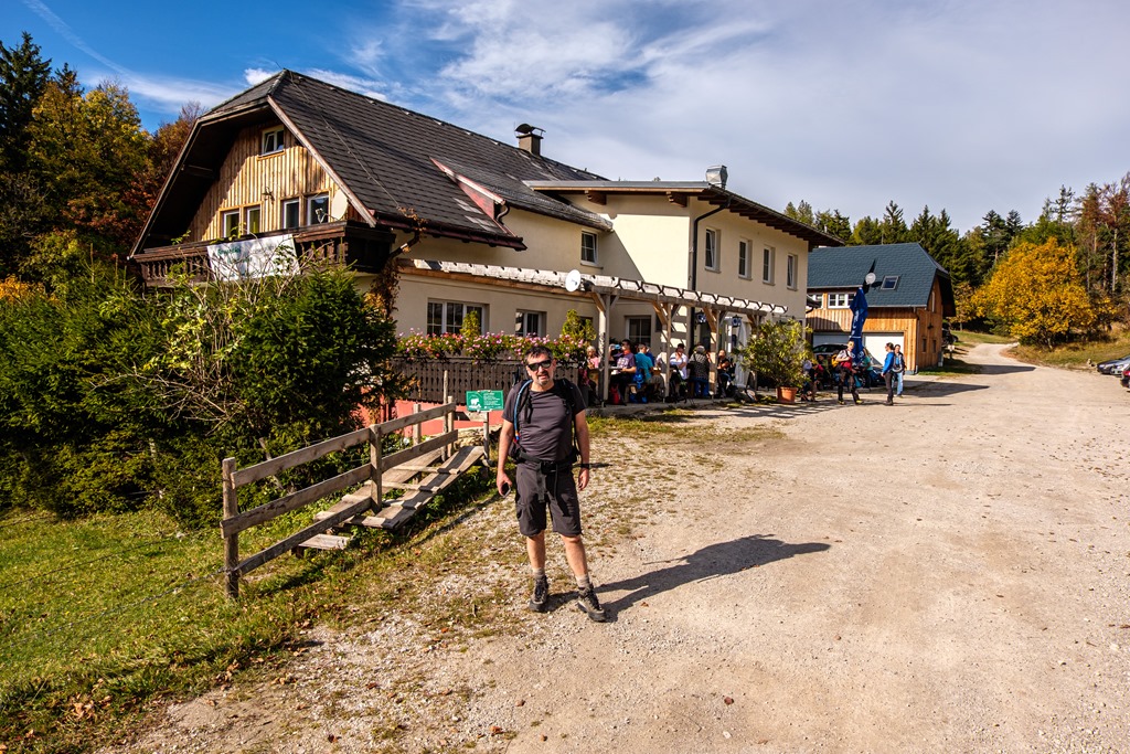 A sors szeszélye úgy hozta, hogy most Attilával csak egy könnyű kis őszi túrára indulunk a Schneeberg-vidékére. Puchbergben van a találkozó 9:00 óra előtt 5 perccel, de amikor idejekorán 8:40-kor begördülök a parkolóba, Attila már vár. Nicsak!