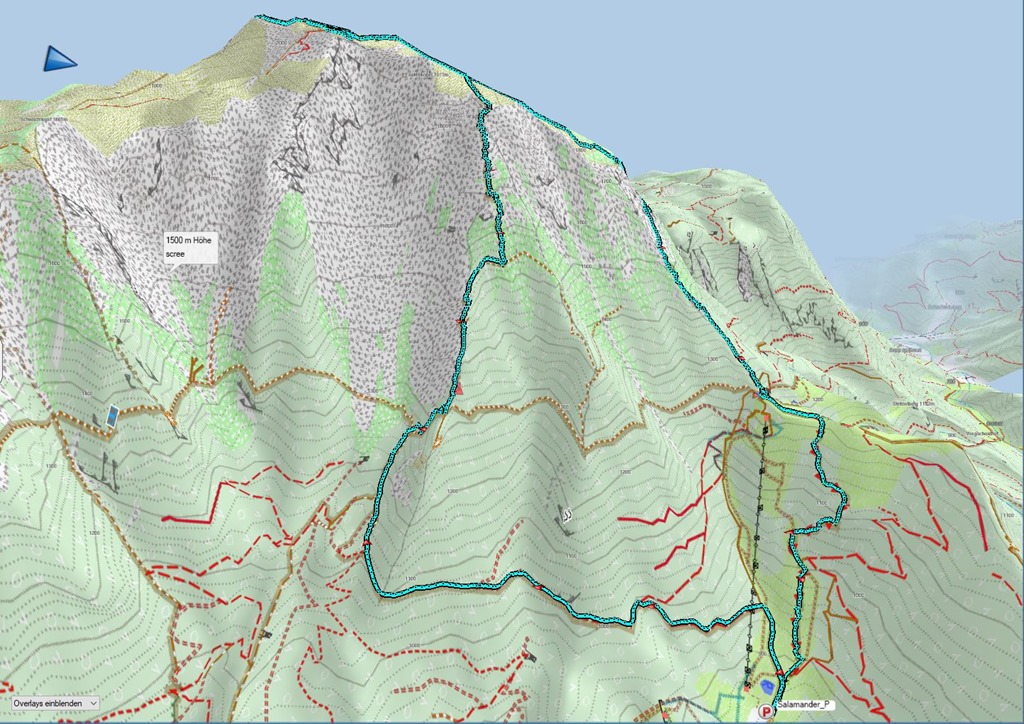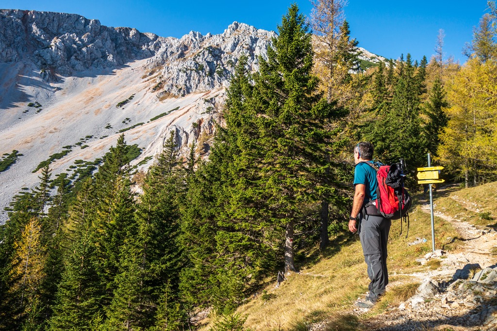 8:50-kor kezdjük meg utunk Losenheimből, a Szalamandra-libegő völgyi állomásából. A legrövidebb út a Weningersteigen át vezet a Nandl-gerincre.