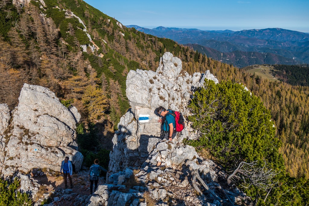 Nagyon szívesen kedves Szabolcs. A Schneeberg vidékén a Nandlgrathoz hasonló élményt nyújt a Novembergrat illetve az Oberer (Felsö) Herminensteig. Ez utóbbi kissé fokozza a technikai követelményeket. Amennyiben az Unterer (Alsó) Herminensteiget is a bevállalja, akkor az már színtiszta 2-es szint lesz. Az említett túrák beszámolóját lásd itt: link “Alsó Ausztria/Schneebergland“. A Raxon ajánlhatom a Preintalersteiget, Preinerwandsteiget és a Wildes Gamsecket. Minden jót, sok szép élményt.