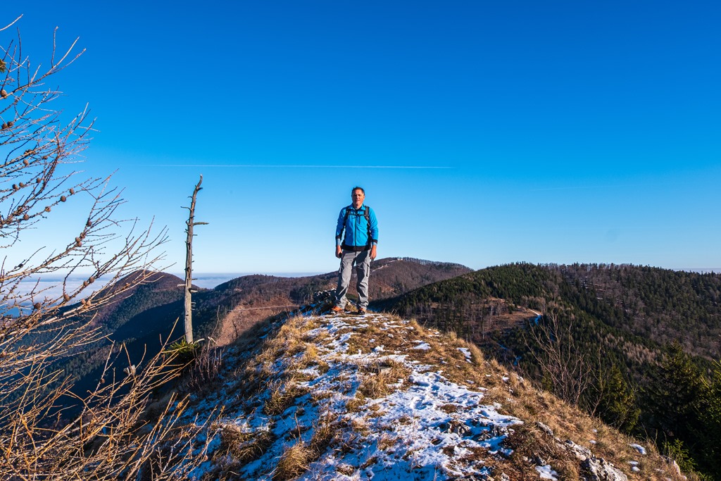 Sanyi érkezik a Kirchwaldbergre. A távolban a Schneeberg