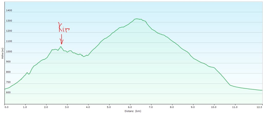 Elmúlik 10:00 óra is amikor leereszkedünk a Kirchwaldberg még marasztalgató ormáról és folytatjuk megtervezett utunkat, mely most inkább lejt a Kirchwaldberg és az Unterberg közti nyeregbe 969 méteren (10:30). Innentől kezdve aztán újra folyamatosan felfelé kunkorodik a turistaút.