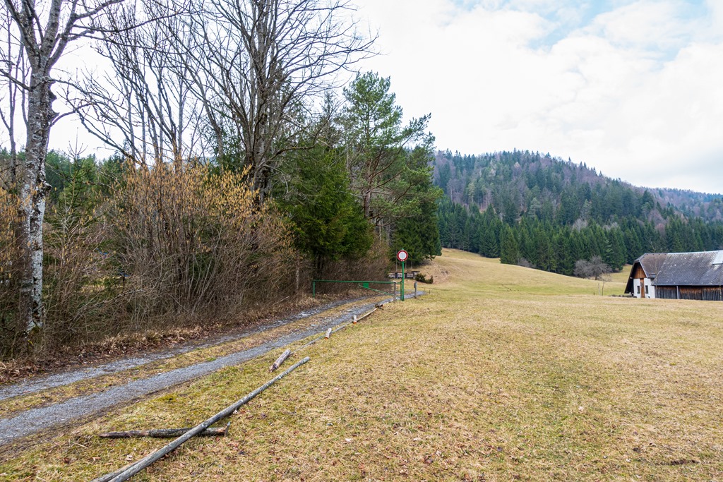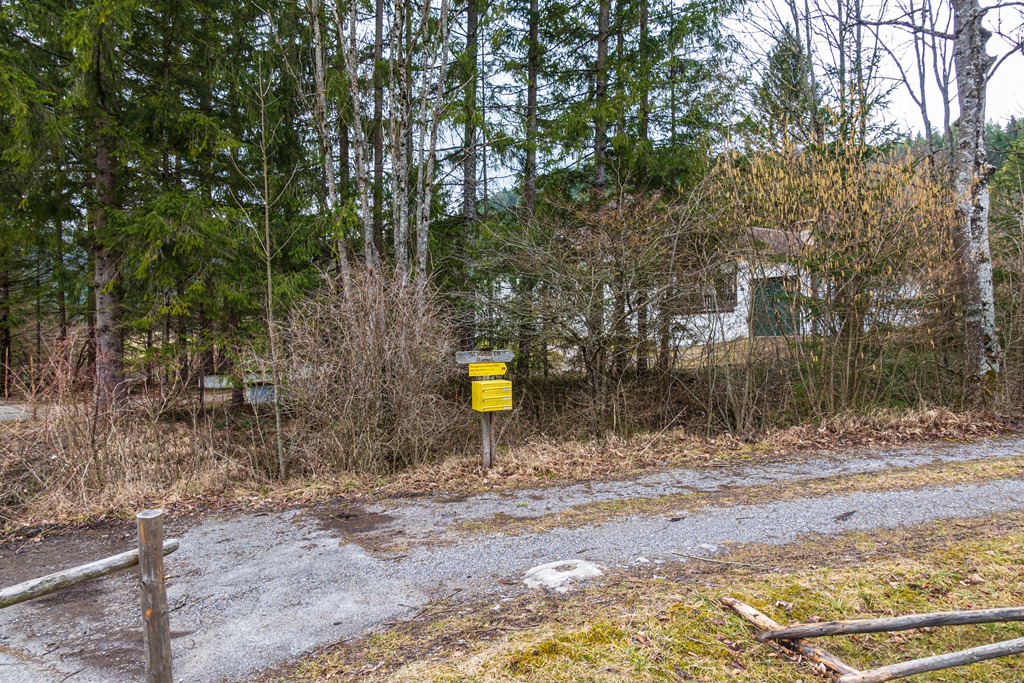 A „Kumpfmühle túra” különlegessége, hogy tán a legrövidebb, völgyből induló útvonal, amennyiben eltekintünk az Ebendwaldhöhetől, de az nem a völgyből indul. Kleinzell felől érkezve az út baloldalán, a Schwarzenbach patak partján lenne egy tágasabb térség parkolni, de az most egy szalaggal le van zárva. Hm! Nem tudni miért. Az autóinkat tehát az út jobb szélén állítjuk le, kicsit szűkös a hely de elmegy.