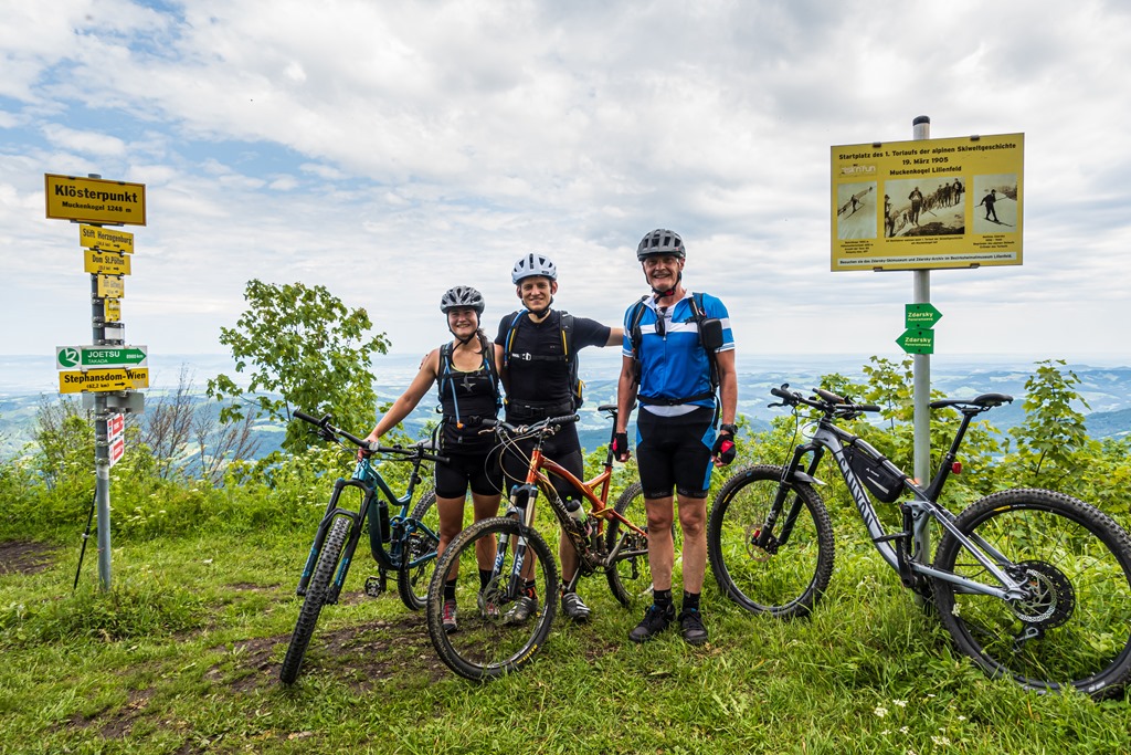 A Muckenkogelre illetve tovább a Traisner-Hinteralmra vezető hegyibiciklis útvonal 2015-ben lett átadva a köznek. Na, utat építeni azért nem kellett senkinek. Az „átadás” körüli nagy hajcihő abban merült ki, hogy leszerelték a bicikliseket addig kitiltó jelzőtáblákat.