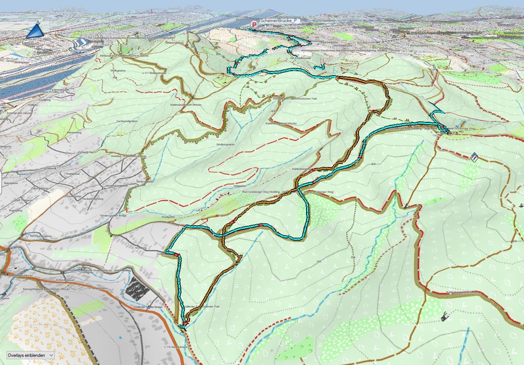 Gondok nélkül érek ki a második erdészeti útra, ahol szemközt félreismerhetetlenül jön az utolsó, harmadik szakasz. Nos, ez azért brutális! Nem várt módon megleckéztető! A fentihez hasonló kráter előtt ismét megtorpanok és bevallom, inkább manuálisan ereszkedem alá. Ezt azért még majd egyszer ki kell vasalni. A továbbhaladás sem zökkenőmentes, a szó szoros értelmében. Egyértelműen ez a legkihívóbb, legkeményebb harmad. Most szerencsére a sárga agyagos vályú, ahol az út egy része visz, ki van száradva. Az egyensúlyérzékem erősen igénybe veszi a terep, de végülis sikerrel érek ki az ereszkedéssorozat végét jelző aszfaltútra. Ez már Weidling.