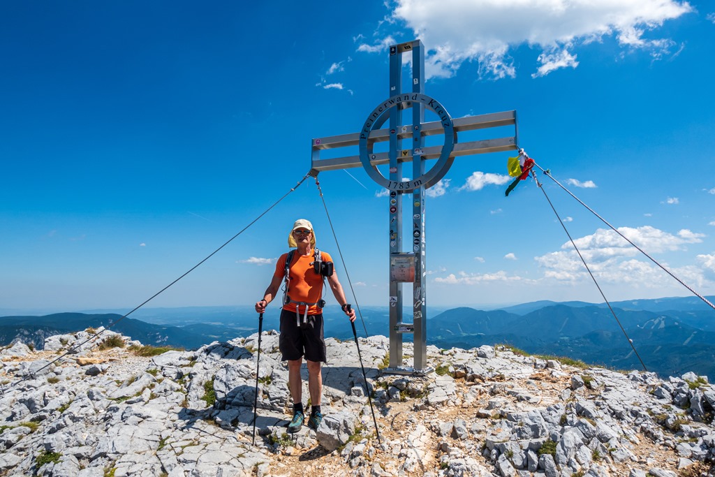 Fel a Preinerwand jól ismert keresztjéhez, majd hepehupásan folytatva egészen az Ottohausig (14:40) bírjuk elektrolitok nélkül. A hűségre való tekintettel természetesen itt sem mehetünk tovább anélkül, hogy ne tennénk valamit a test kedvező ásványi só és víz-háztartása fenntartása érdekében.