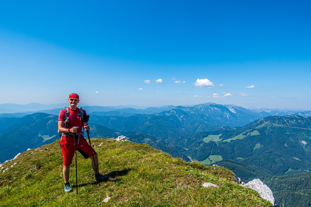 A Schneealpe még tartogat jó egynéhány újdonságot, köztük a számomra is még teljesen ismeretlen Rudolfsteig – Knappensteig – Farfelsteig útvonalat, mely a Krampengrabenból indulva ostromolja a hegy platóját. Odafenn pedig egy sziklaszirt, a Rauhenstein is hívogat a becserkészésére. Ismét Péterrel indulunk felderíteni ezeket a túlcsordult turista ösvényeken kívüli, valamelyest magányosabb helyszíneket, és nem csalatkozunk.