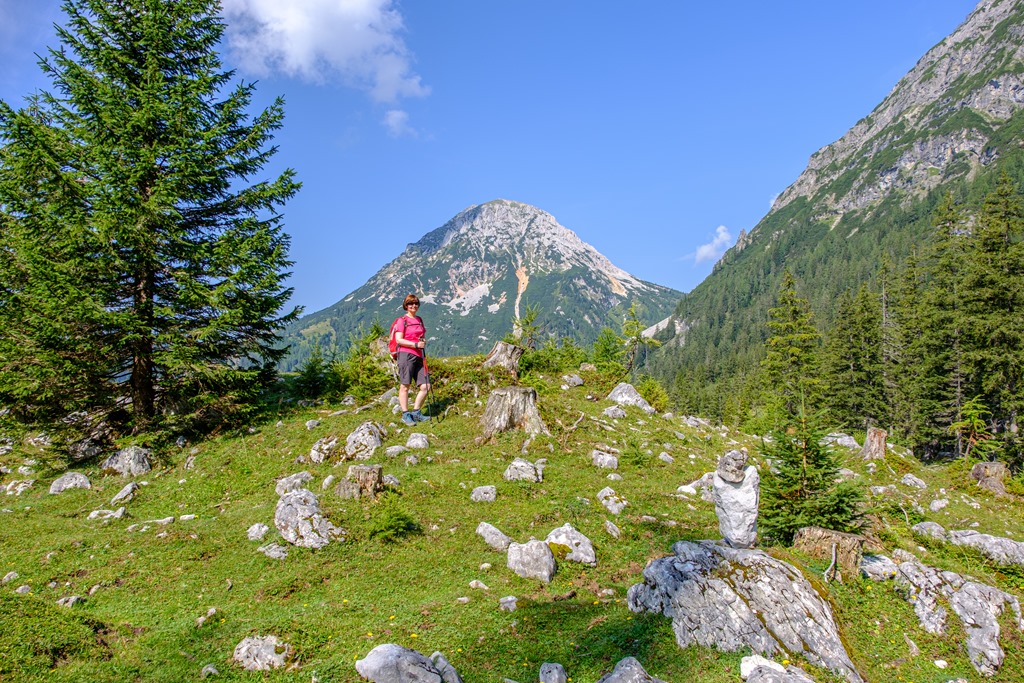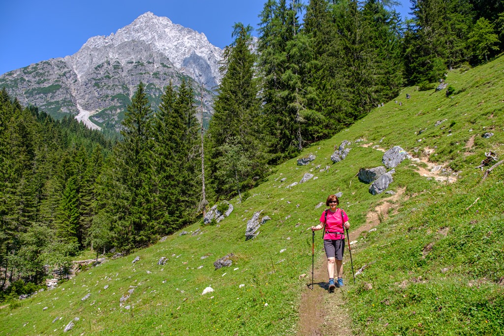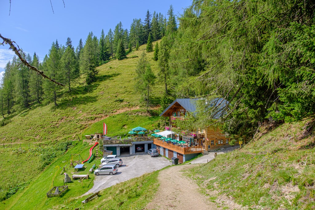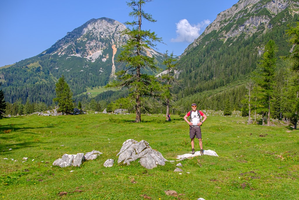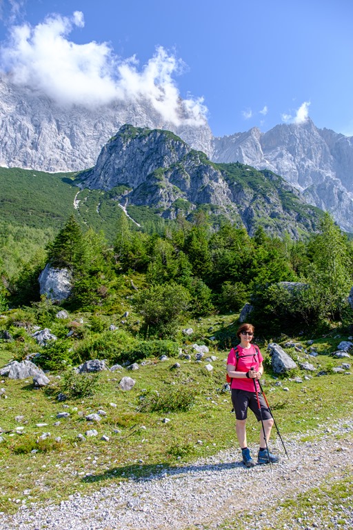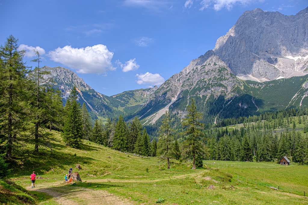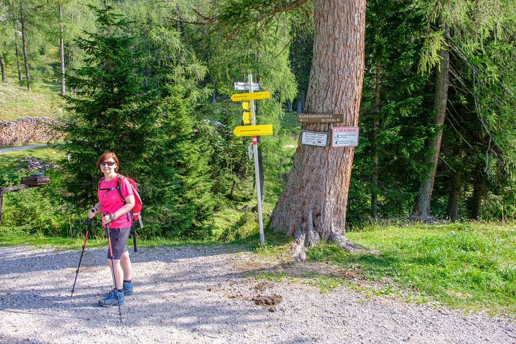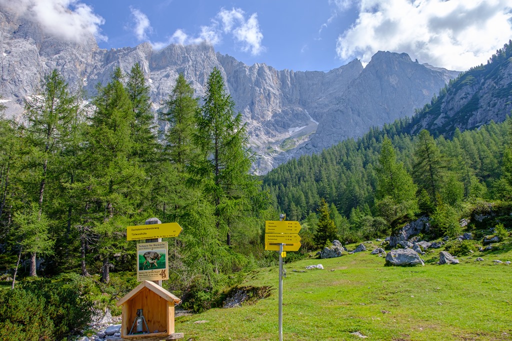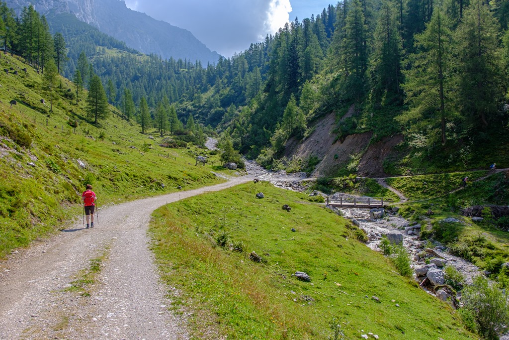 Kiindulópontunk a Kalte Mandling patak völgyében fekvő, Dachsteinruhe nevet viselő parkoló. Széles erdészeti úton kaptatunk fel a Schaidlalmig. Lehetne még folytatni a Bachlalmig, de kedd lévén ott ma pihenőnap van (Ruhetag), így sajnálattal kihagyjuk az attrakciót. Pedig egyik érdekessége, hogy náluk mormotákat lehet látni, mégpedig közelről is (àllítólag).