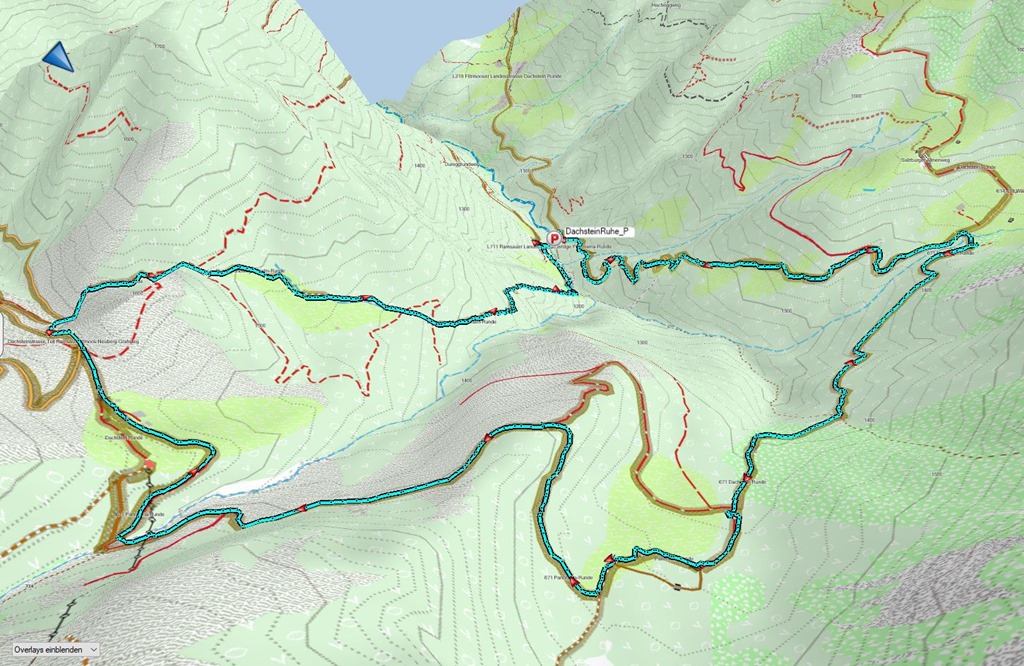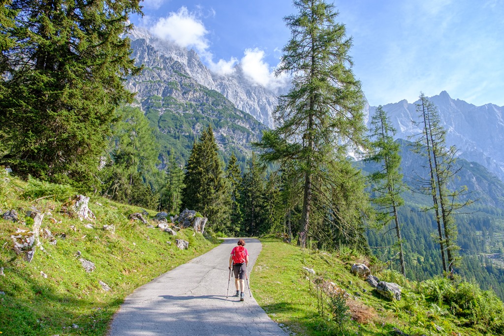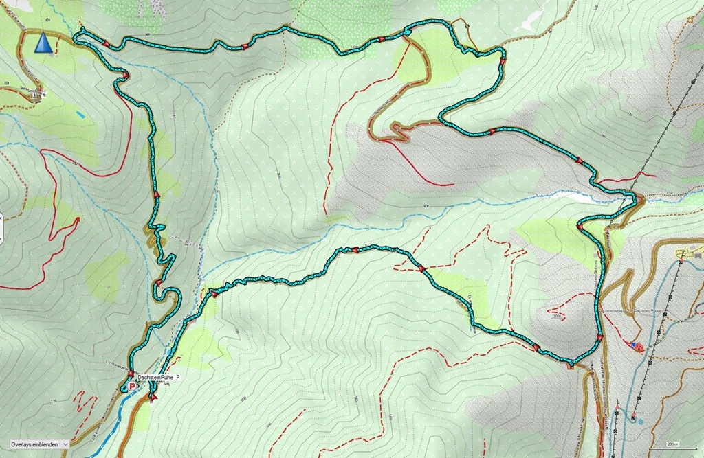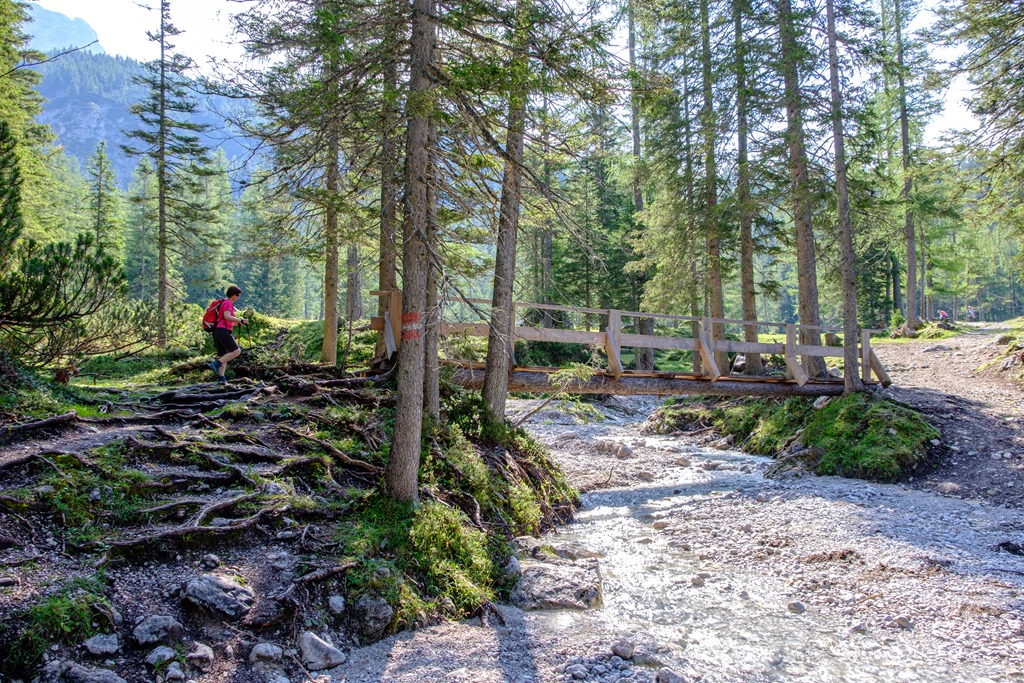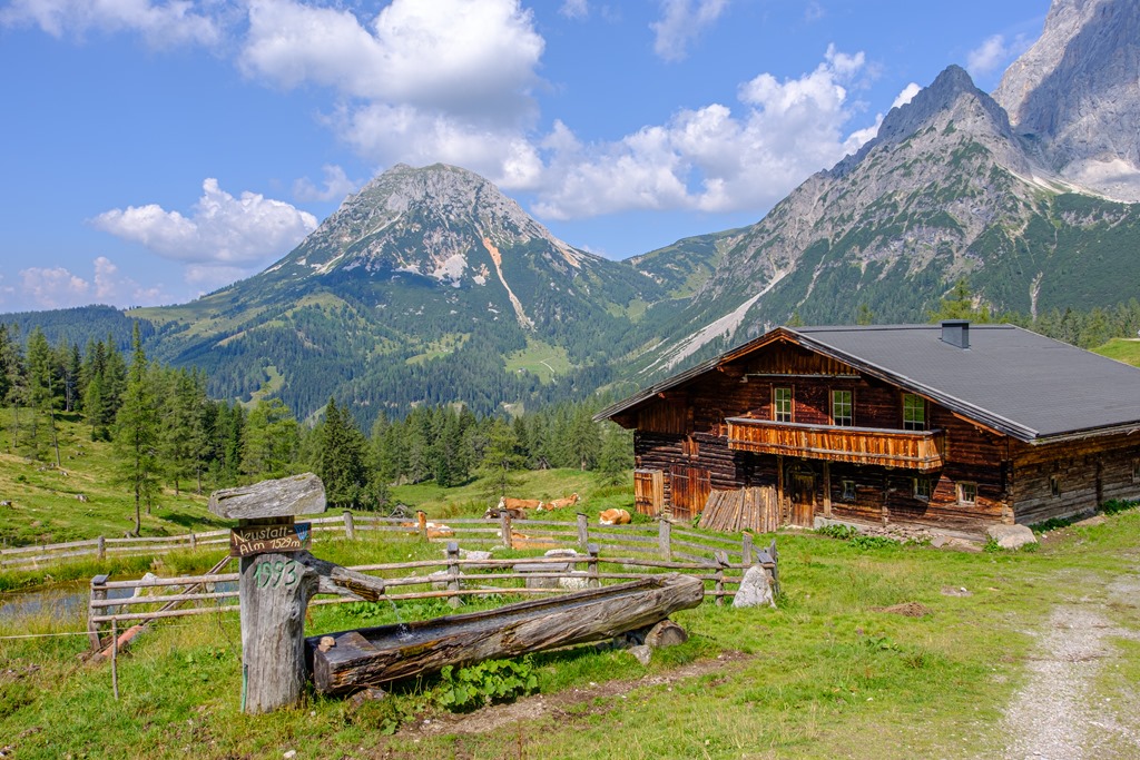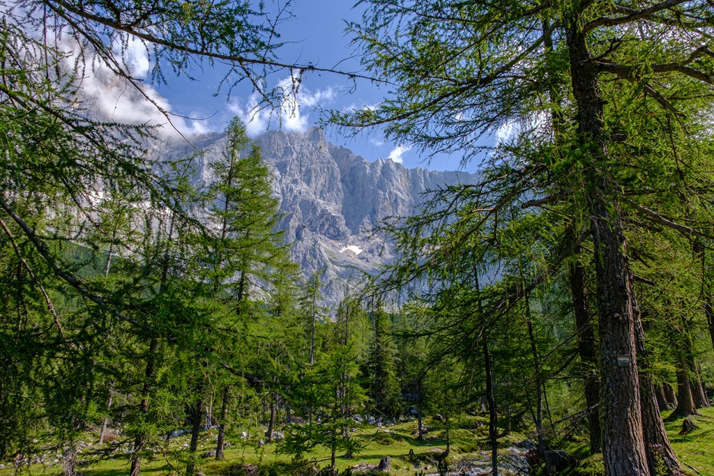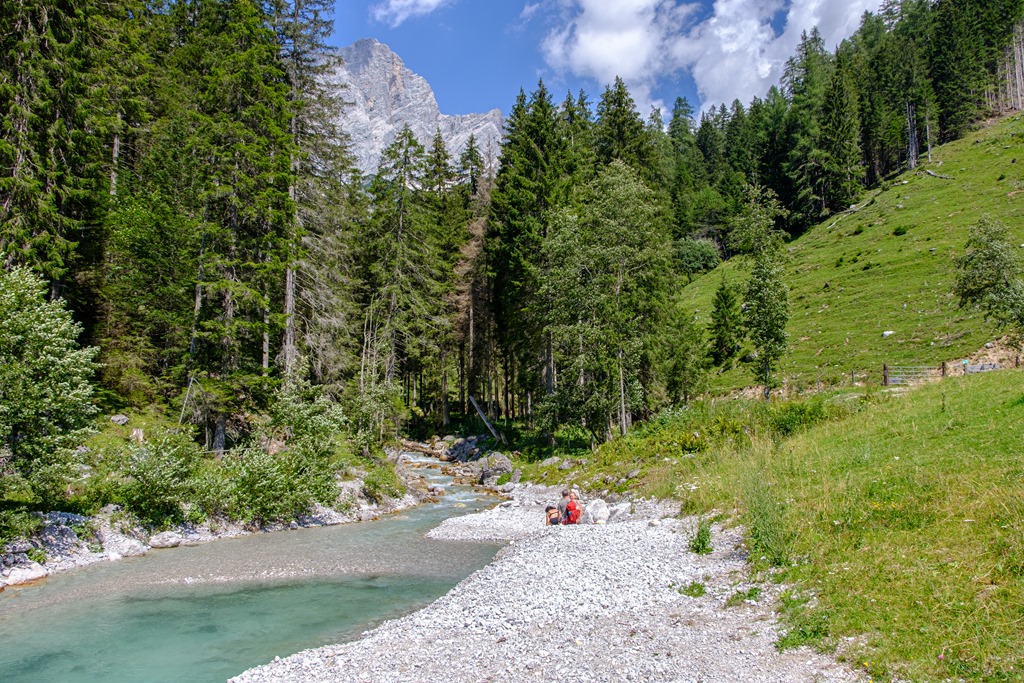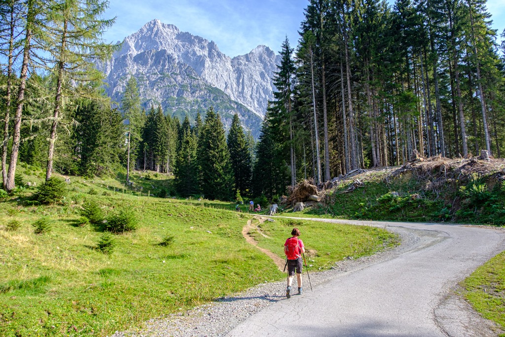 Kiindulópontunk a Kalte Mandling patak völgyében fekvő, Dachsteinruhe nevet viselő parkoló. Széles erdészeti úton kaptatunk fel a Schaidlalmig. Lehetne még folytatni a Bachlalmig, de kedd lévén ott ma pihenőnap van (Ruhetag), így sajnálattal kihagyjuk az attrakciót. Pedig egyik érdekessége, hogy náluk mormotákat lehet látni, mégpedig közelről is (àllítólag).