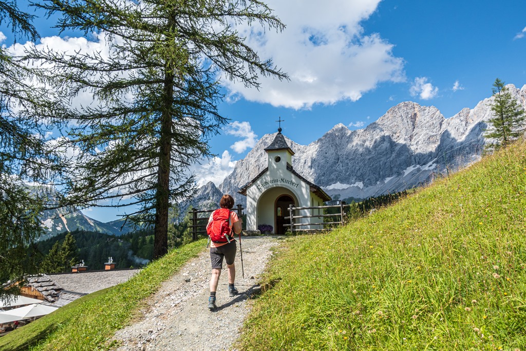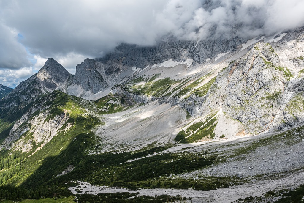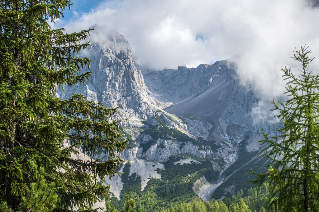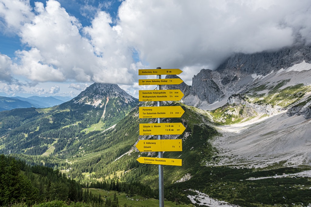 Nyári szabink utolsó napján mosolyog ránk az ég, és tehát semmi akadálya egy szép, befejező túrának a Dachstein déli falai alatt. Most az Edelbrunn fogadó alatti parkolóból indulunk, hogy a Roseggersteigen érkezzünk fel a Brandriedelre (1725m). Innen majd folytatjuk az úgynevezett 5 kunyhó úton (Fünf Hüttenweg), mely a legismertebb és egyben a legnépszerűbb fogadókat és menedékházakat fűzi egy láncra, az olyanokat mint az Austriahütte, Türlwandhütte, Südwandhütte, Gasthof Hunerkogel és a Brandalm (illetve a Dachsteinhaus további adaléknak).