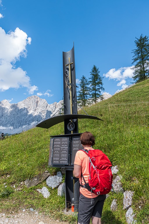 A pihenőnk után még sorra kerül a Brandalm (13:30) és a felette található kegyhely. Itt egy vaskönyvben, név szerint is fel vannak sorolva a Dachstein halálos áldozatai (fenti képek), a legkorábbi időktől, egészen a jelenig. Szóval ilyen babérokra azért nem vágyunk. Ezután gyengéden lejtő, hegyi biciklisektől rajzó erdészeti úton elhaladunk még a Dachsteinhaus mellett, majd rendre visszaérkezünk a kiindulópontba.