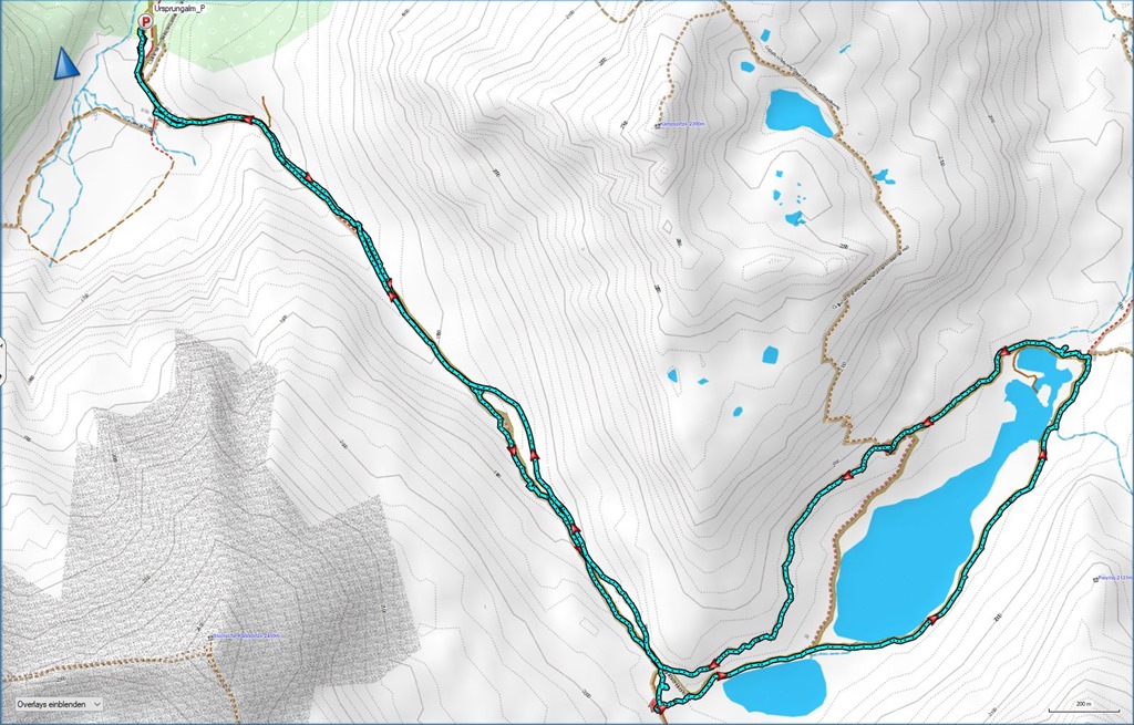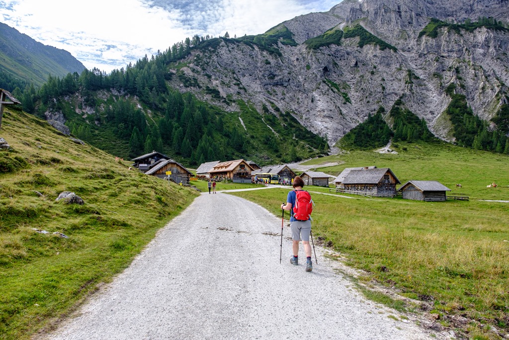 A túra kiindulópontja az 1600 méter tengerszinten fekvő Ursprungalm. A döngölt felületű, vámköteles alpesi út számtalan hajtűkanyarban tekereg kígyó módjára 1100-ról fel a magasba. Tapasztalt sofőröknek is nagy odafigyelés szükséges az egysávú, meredeken kapaszkodó úton. De meglepetésünkre még autóbusz járat is van idefel.