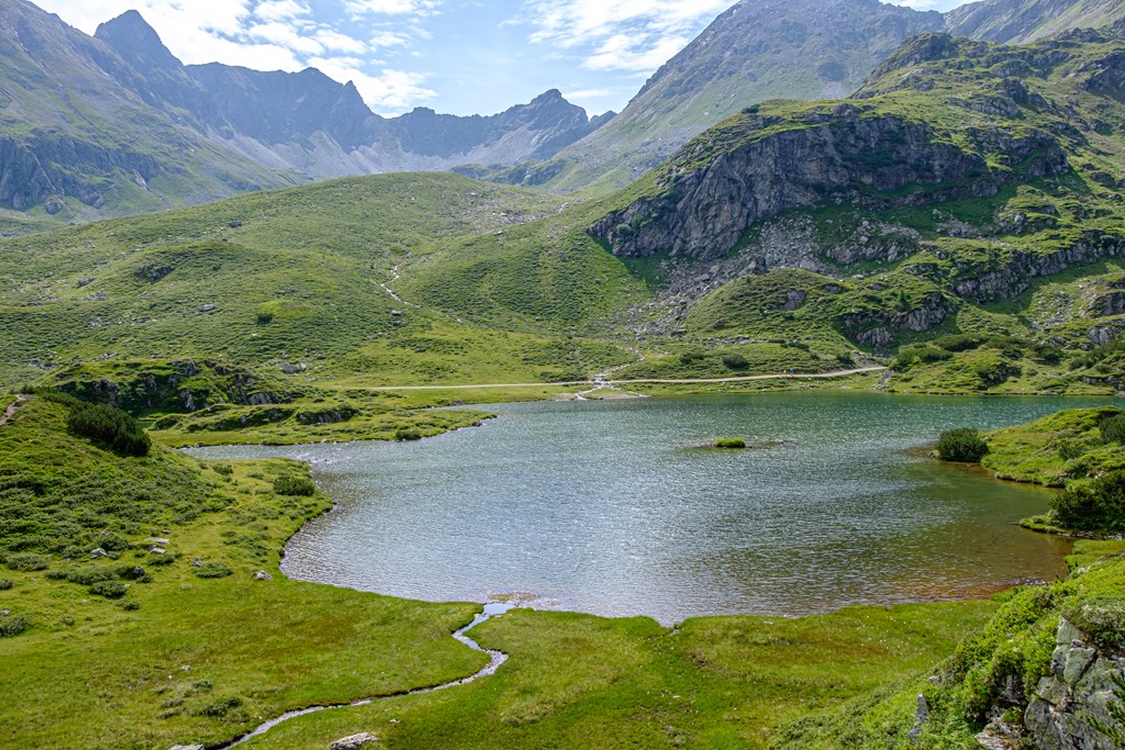 Elindulunk tehát becserkészni a tavakat. Elsőnek a kisebb, az Oberer Giglachsee kínáltatja magát (fenti kép), majd a két tó közti földnyelven átmegyünk a nagyobb (Unterer Giglachse) déli partjára és ott folytatjuk.