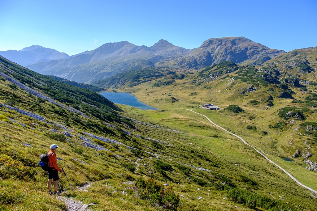 Hétfő estére megérkezett munkatársam Péter is, így semmi akadálya, hogy a stabil túraidőt ígérő keddi napon egy nagyobb lélegzetű túrára adjuk a fejünket. Legutóbb, amikor Angikával sétáltunk a Giglachseek partján, ugyancsak kíváncsivá tettek a magukat körös-körben nagyban kínálgató hegycsúcsok, köztük a Stájer Mészkőcsúcs a Steirische Kalkspitze (2459m). Aztán kiderült, hogy van neki odaát Salzburg tartományban egy ikertestvére is, a Lungauer Kalkspitze (2471m), mely néhány méterrel még magasabb is. Ez lenne tehát mai célunk.