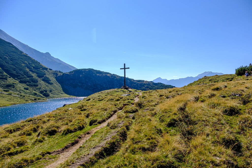Péter feje felett, lejövetel után, a Lungaue Kalkspitze ferde keresztje