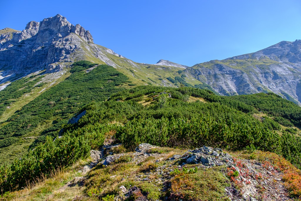 Az Akrscharte felé. A kép közepén már kibukkan a csúcsunk
