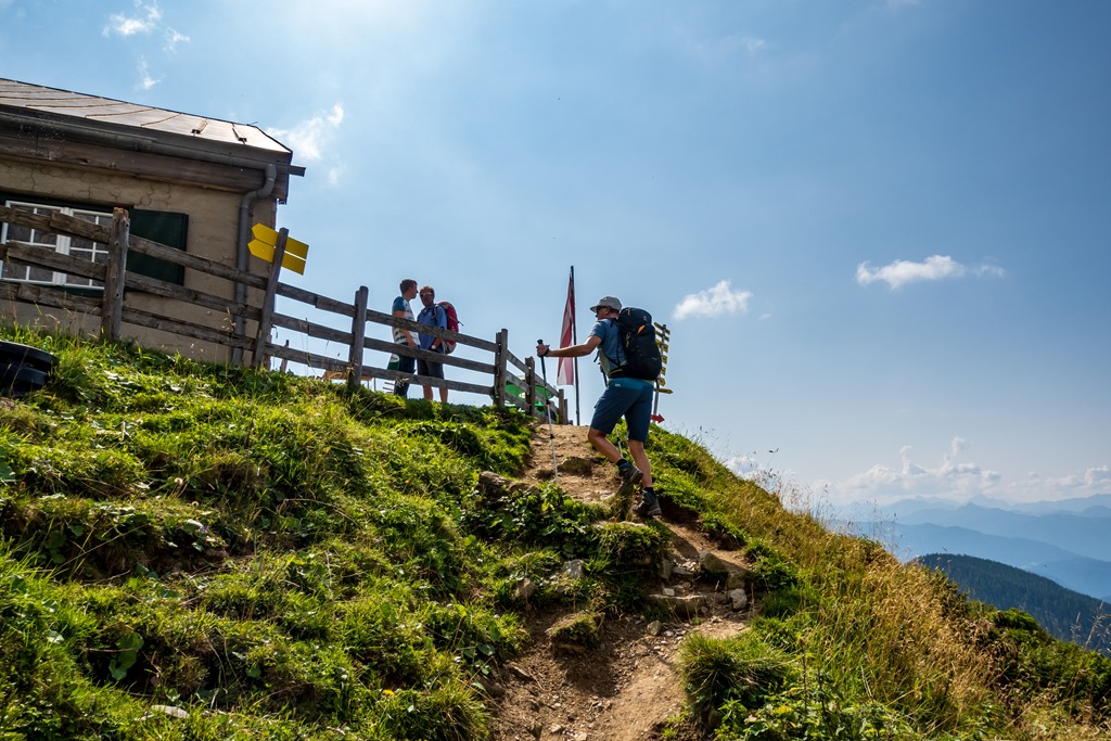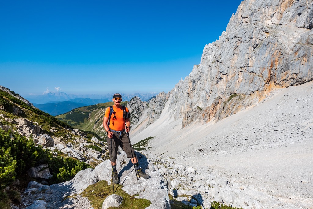 Majdnem másfél órán át menetelünk keleti irányban ezen a változatos, tagolt, hatalmas sziklatömbökkel tarkított terepen. Később áthaladunk az Anna majd pedig a Johann ferraták felé vezető elágazásokon, majd pedig érkezünk déli célunkba a Südwandhüttebe (12:20). Ezzel túl is vagyunk a dolgok nehezén. Az ebédszünet után a Schönbühelen át jutunk el a Glösalmra (13:45) ahol kávéval és sütivel jutalmazzuk magunkat.