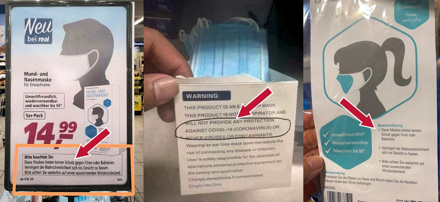 … a maszkák csomagolásán egyértelműen fel van tüntetve, hogy nem védenek a vírus ellen: WILL NOT PROVIDE ANY PROTECTION AGAINST C…19 (de mit neked a figyelmeztetés, bégess csak tovább birka módjára, majd Viktátor megjutalmaz, amiért a fejed önként a járomba hajtod. Mi van veletek?).