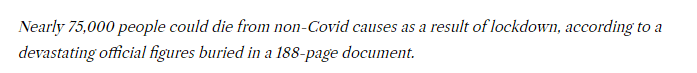 Nagy Britanniában akár 75000 nem vírusfertőzés okozta közvetett elhalálozást is okozhat egy soronkövetkező lockdown, mondja egy 188 oldalas tényfeltáró elemzés a SAGE beszámolója (Scientific Advisory Group for Emergencies). Olyan ez, mint amikor kalapáccsal harcolunk a legyek ellen. Emezek vidáman röpködnek továbra is, de az asztalt sikerrel verjük rapityára. De mi továbbra is csipkerózsák álmát szuszogjuk, ugye!