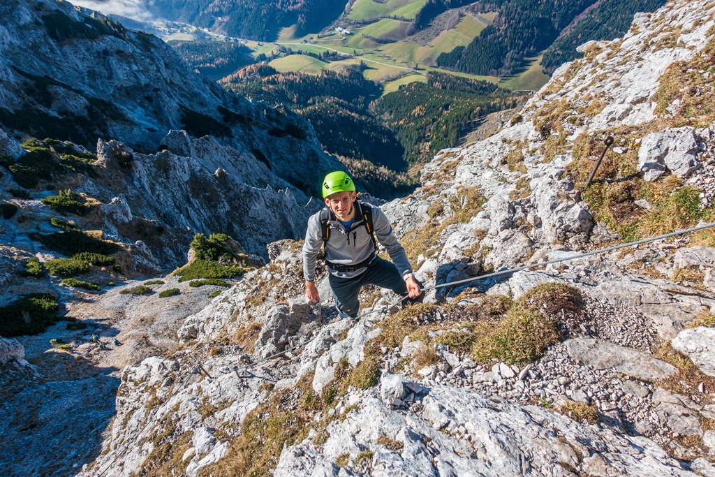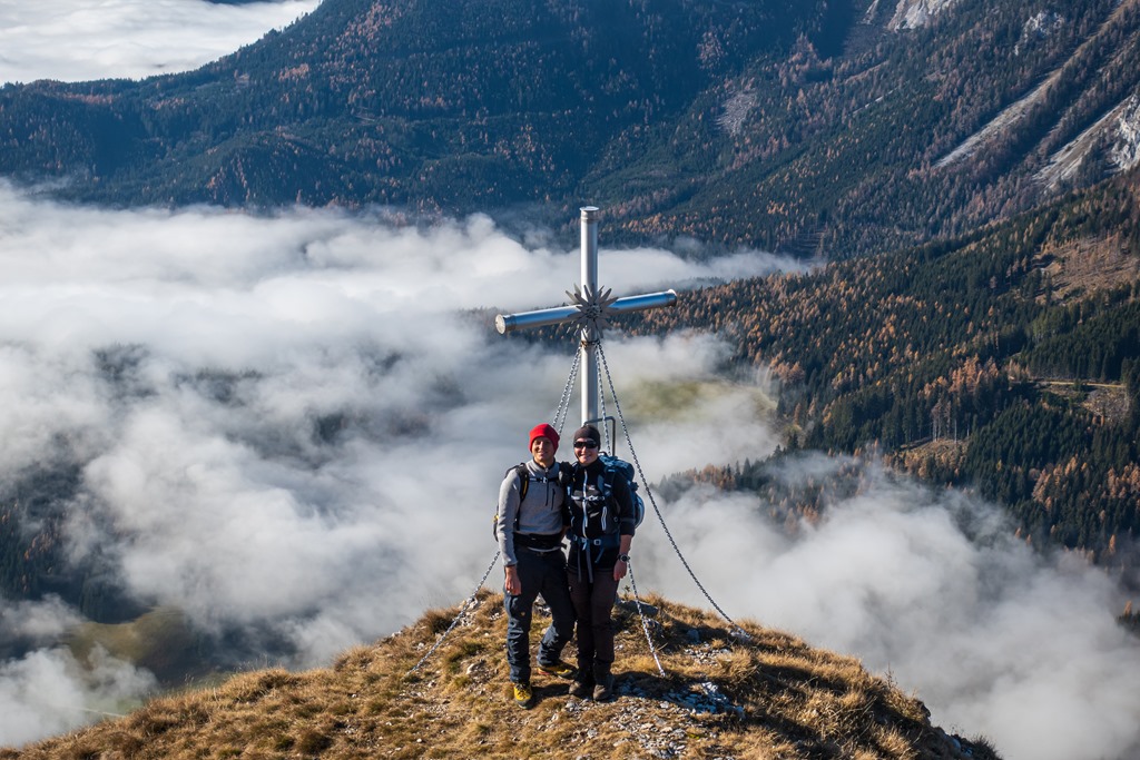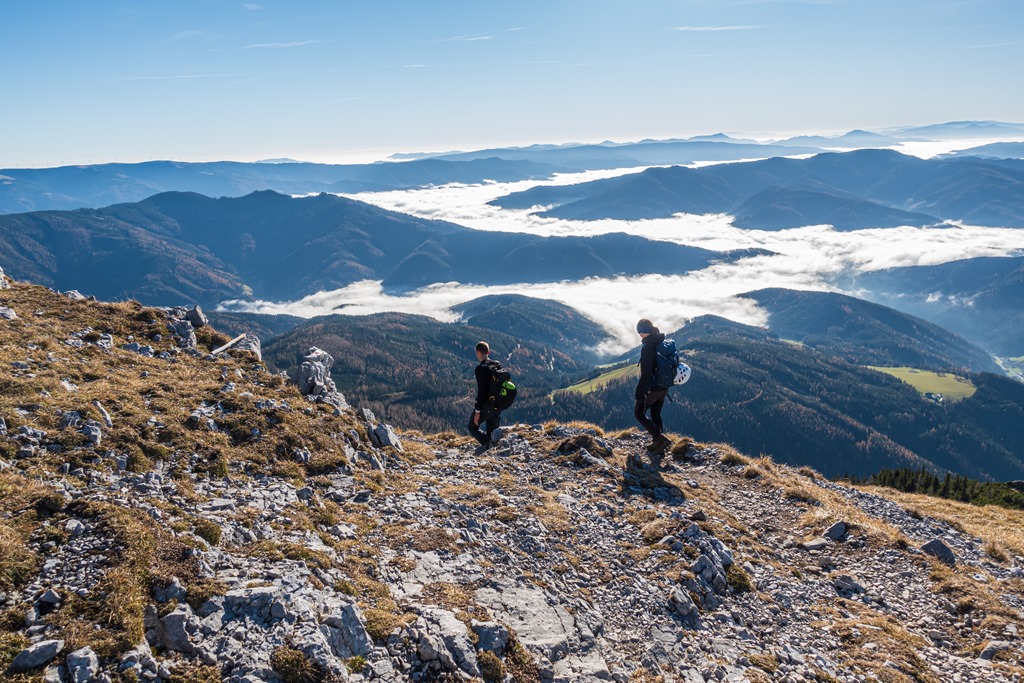 Oh, hányszor elmentem már a Rax egyik legszebb sziklaszirtje alatt, anélkül, hogy felfedeztem volna magamnak. Valahogy sajnáltam rá azt a plusz idő ráfordítást, amit a még előttem álló túra idejeét meghosszabbította volna. De most Cirmi unszolásának köszönhetően, rábólintottam erre a kitérőre, és nem bántam meg. Cirmivel és Philippel indulunk 9:00 órakor Altenberg an der Rax kistelepülésből, hogy déli oldalról, sok-sok napsütés kisértében, jussunk fel a Rax legtetejére.