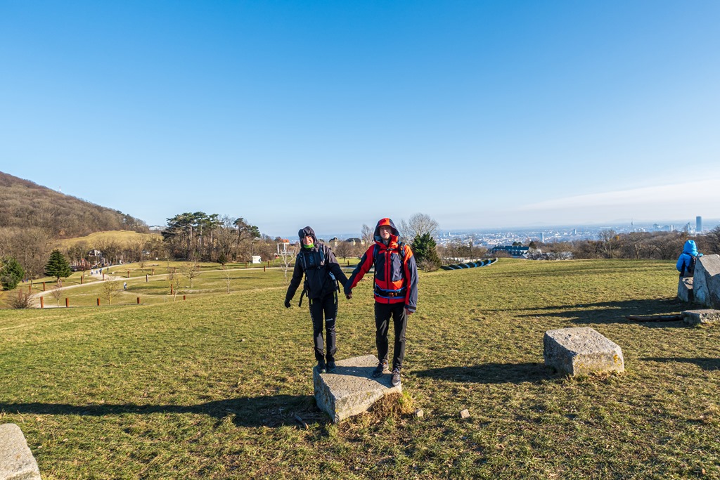 A szokásos év végi Göller-túra lenne soron. Napsütésben nincs is hiány, de a viharos szél szertefújja reményeinket. A Beaufort-skála szerinti 9-11 erősségű széllöketekkel (100 km/h körül) nem kívánunk dacolni. Így aztán maradnak a környező kisebb-nagyobb hegyek-dombok Bécs város területén. Bölcs döntés volt tartózkodni a magaslatoktól, mert bizony még itt, 400-500 méter szinten is cibál és rángat a szél rendesen. Később nézem a Rax hegyiállomás feljegyzéseit, és valóban, a széllöketek elérték a 100 km/h sebességet.