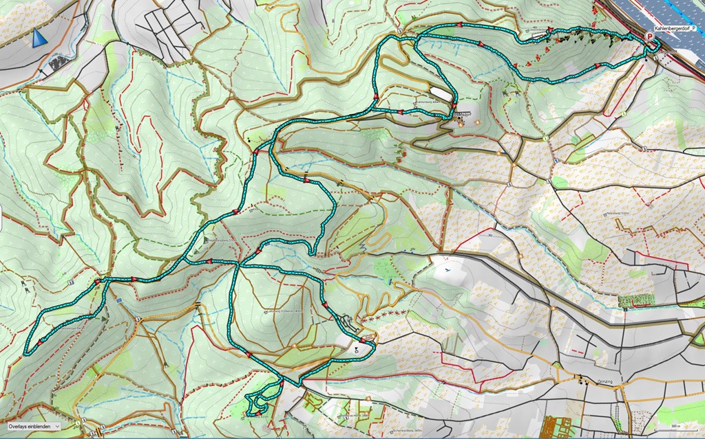 10 óra elött indulunk a Kahlenbergerdorfbból, a Duna partjáról. A Nasenwegen kezdjük, majd egy árokba jobbra fel elhagyjuk az aszfaltozott utat és diretisszima módozatban egyenesen mászunk, majd kaptatunk a Leopoldsberg tetejére (fenti képek). Korábban, rossz idő esetén itt szoktam fel-alá húzni, kondíciós tréning gyanánt.