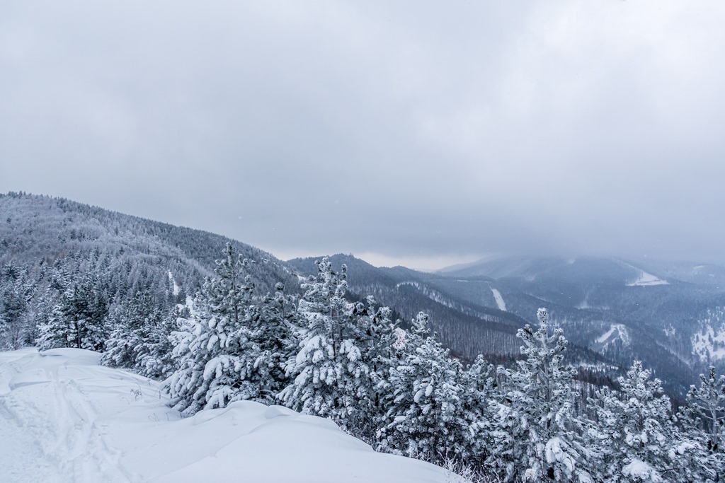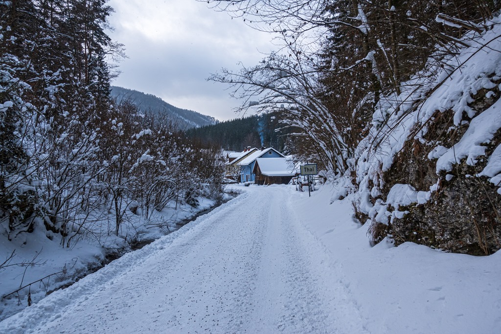 Az időjárás nem igazán kedvez. A Kieneck alacsonyan szálló felhők rabságában. Gyengén havazik, –4C fok, feljebb tán még kevesebb. A környező hegyvilágból nem sok látszik. A nap, csak sejteti magát, itt-ott, ha egyáltalán. Mosolygós kedvü napsugárról nincs szerencsém beszámolni. Ez meglátszik a képeken is. A túrázóknak szánt parkolók sajnos nincsenek eltakarítva, így az út szélén állok le. Féloldalt kénytelen vagyok a mélyebb hóba is belehajtani, remélem induláskor sikerül majd kikászálódnom belőle.