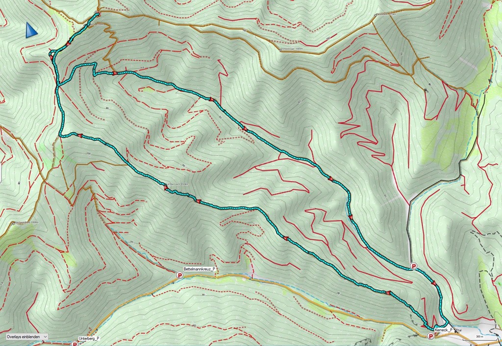 lila A táv Thalból (Enziansteig, Ezianhütte, Viehgraben, Thal) 11.2 km, 660 m szintemelkedés bruttó 4:25 óra (nettó 3:30)