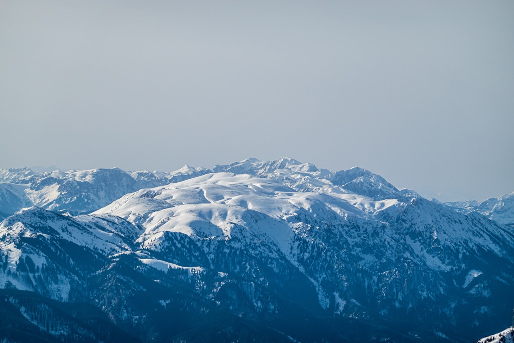 Közelítésben a Veitschalpe havas domborzata