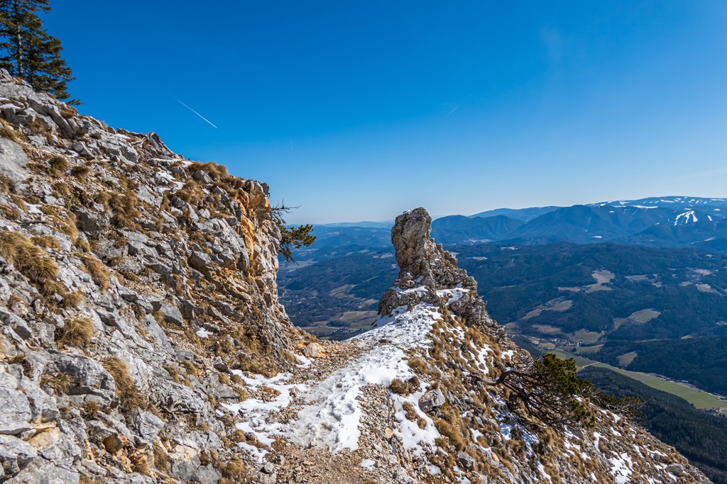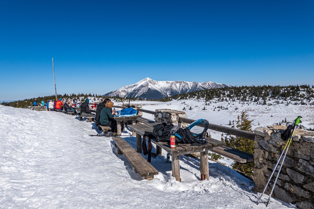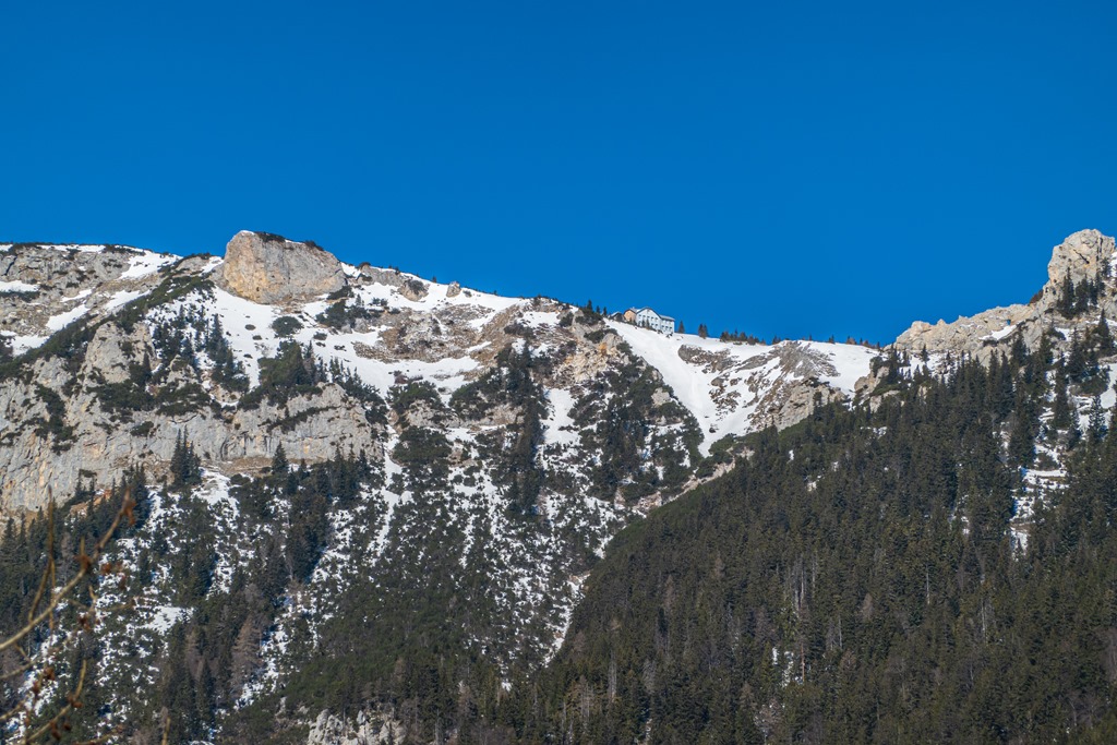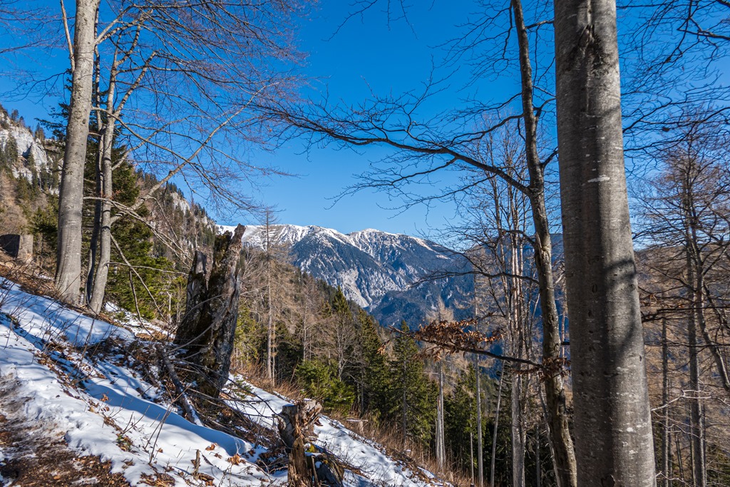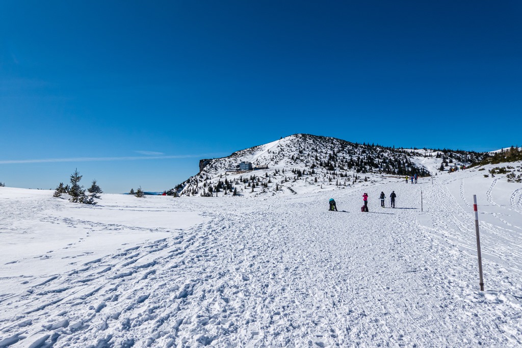 Csodálatos téli nap ígérkezik, enyhe faggyal. Egy gyenge hidegfront hozott 1000 m felett némi havat. A mennyiség feltehetően nem jelentős. A Rax egyik legklasszikusabb túráját választom, hogy elvigyem a Jakobskogel télies skalpját. Mint kiderül olyan rengeteg hó fekszik még a hegyen, hogy az egy-másfél méter magasra nyúló törpefenyők téli álomban szenderegnek a hó alatt. A Jakobskogel szinte bármilyen irányból bevehető.