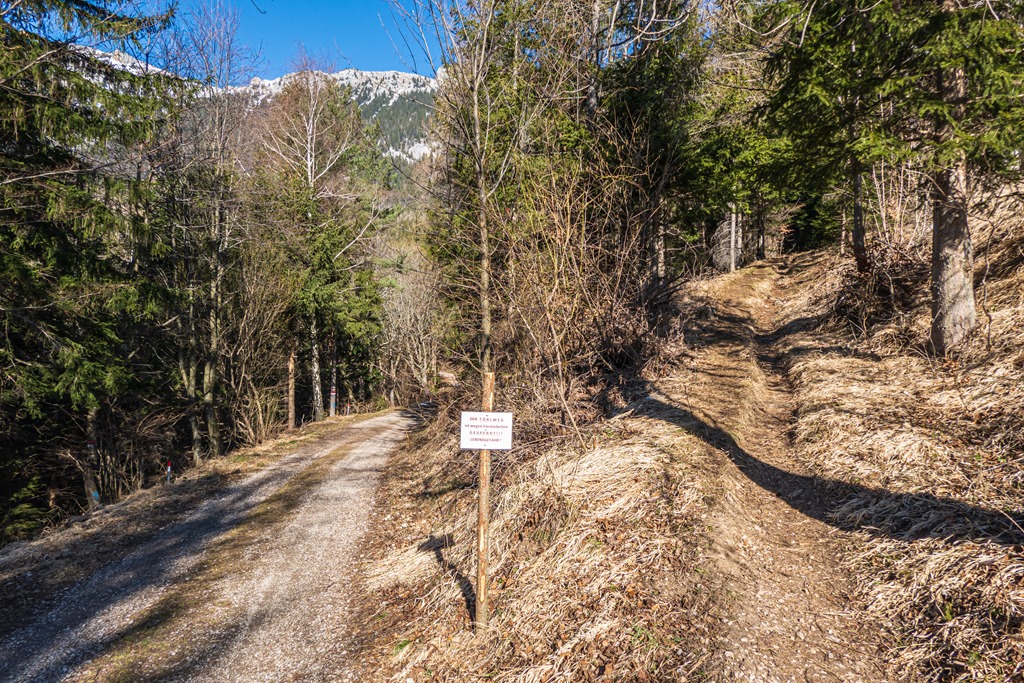 Kis bonyodalom, hogy egymás után jönnek a Törlweg lezártát hirdető táblák. Az elsőt még félvállról veszem, a második elgondolkodtat és a harmadik a Gsolhirnsteig leágazásában arra késztet, hogy a feljutás eme alternatív lehetőségével éljek (lenti kép). A Gsolhirnsteigen emlékezetem szerint eleddig csak lefelé jöttem, nos, akkor most legalább kipróbálom felfelé menetben is. És nem bánom meg.