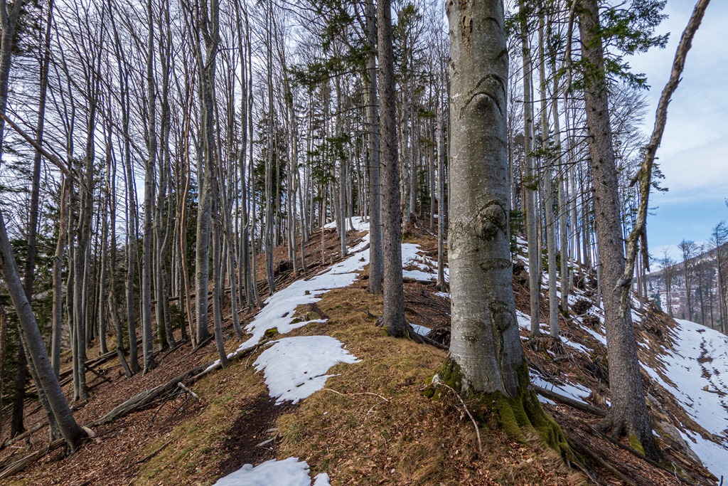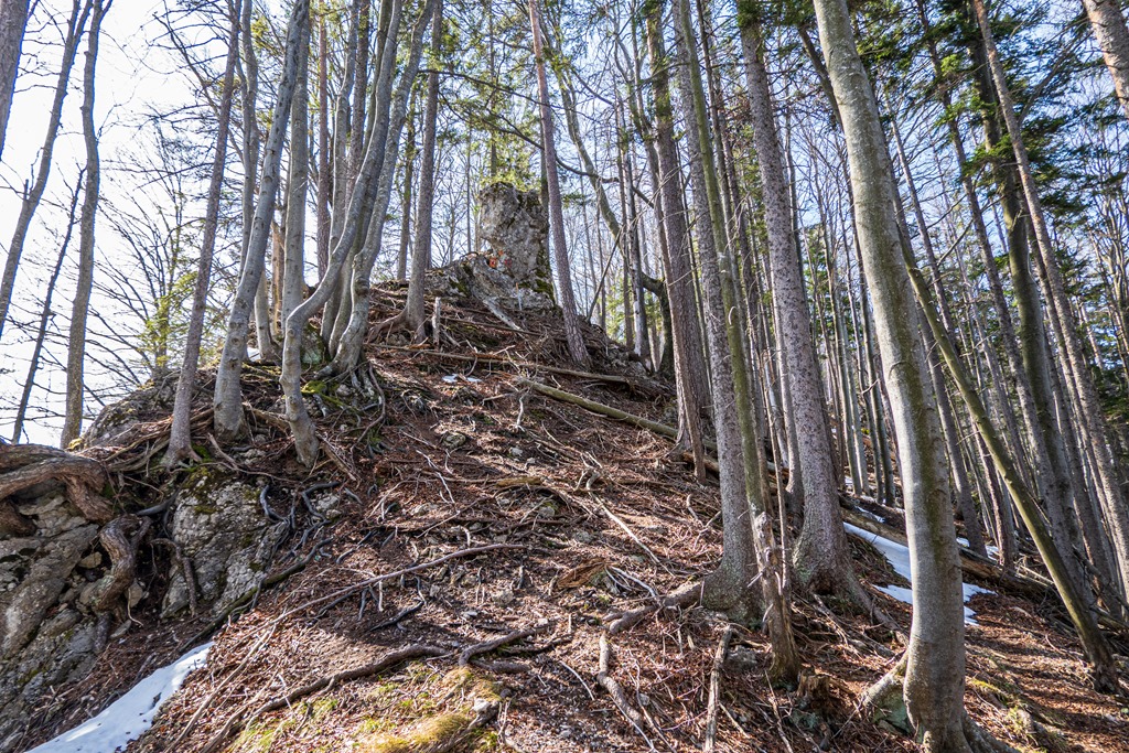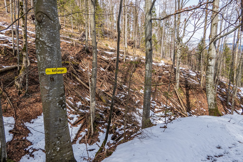 A Hohenbergből induló, a Stadelbergkammon (hegygerinc) vezető turistaút egy bizonyos helyen jobbra elhagyja a gerinc vonalát és a hegy északi oldalán traverzál a Höger irányába. Arra gondolok, hogy mi van akkor, ha maradnék a gerincen és folytatnám jelöletlenül a Stadelberg cirka 1240 méteres csúcsa felé. Nos, lássuk a medvét. Ez az érdekesnek ígérkező felderítés lenne mai célom lényegi mozzanata.