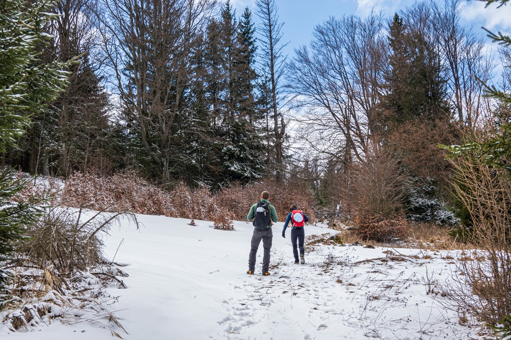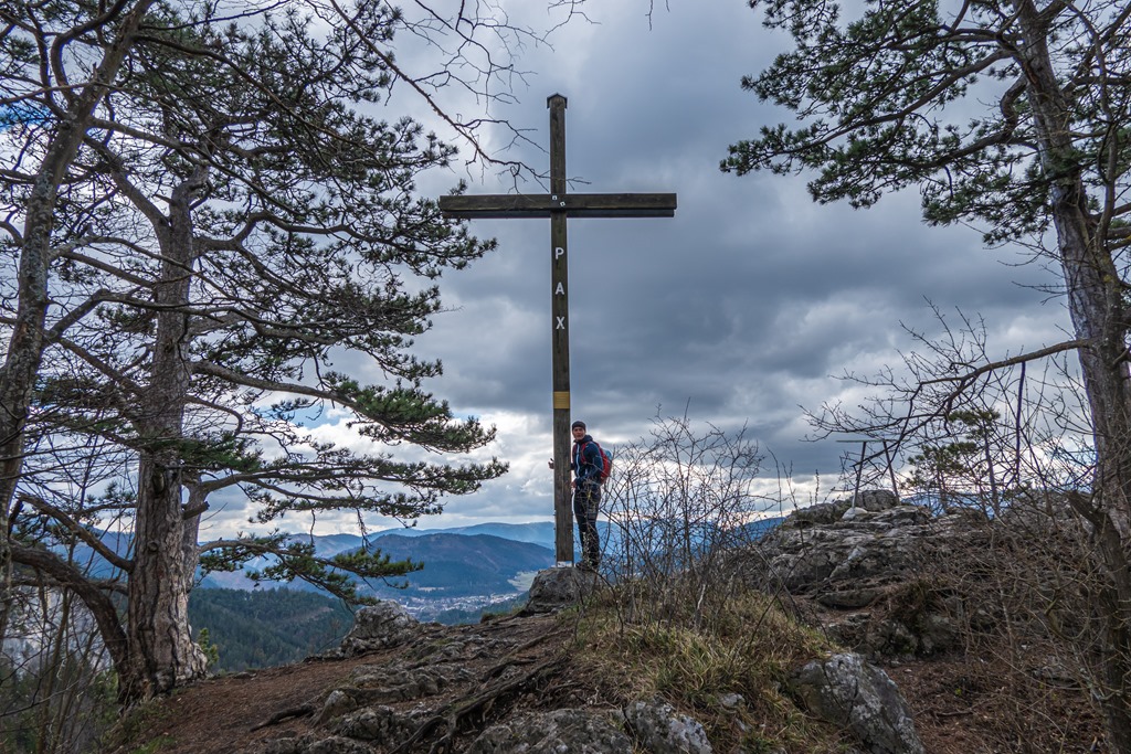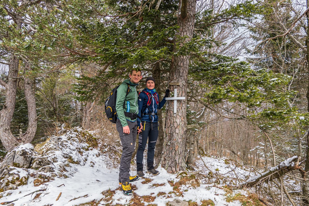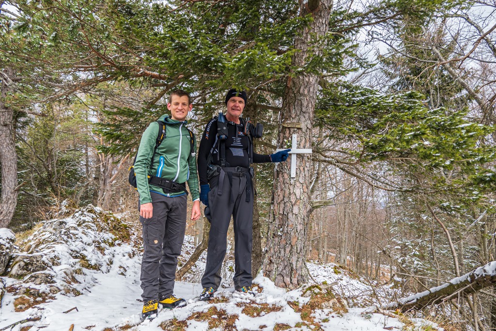 Következik az Almesbrunnberg végső bevétele, ami szóra sem lenne érdemes, ha történetesen nem lepne mag a minap hullott hó jelentős mennyisége. Odafenn szinte elsöre megleljük a fakéregre szerkesztett kis csúcskeresztet. Ezután valóban nem marad semmi más hátra, mint folyamatos ereszkedés a Steinwandklammon át, vissza reggeli kiindulópontunkba.