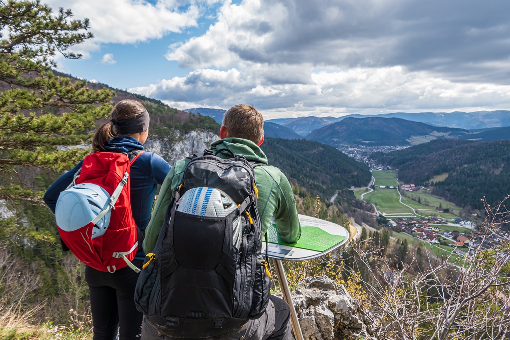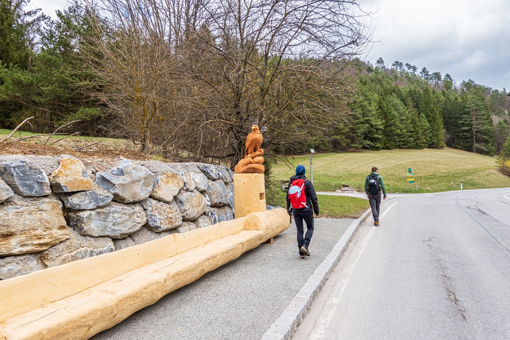 Nézegetem a térképet, miként lehetne variálni a Steinwandklammba tervezett túránkat. Szembeötlik két, számunkra még teljességgel ismeretlen hegy, az Eich (808m) és a Myra-vízesések fölé türemkedő Hausstaien (664m). Nosza, mindjárt szerkesztek is egy útvonalat, mely megejti valamennyi kiszemelt célunkat.