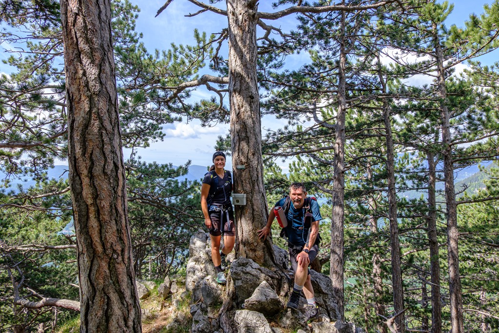 Nem sietünk, élvezzük a célunk elérte okozta örömöt. A hegy jóval meredekebb túloldalán szállunk alá. A túra harmadik része a Knofelbenen ér véget. A Naturfreundehütte jelzi a negyedik és egyben utolsó rész kezdetét. Folyamatos ereszkedés jön az Eng (keskenyet jelent) elnevezésű szurdokba. Valamikor régen, amikor még folyamatban volt a plató erdeinek a brutális kizsákmányolása, egy hosszú facsúsztató volt felépítve a szurdok alján. Korhadt maradványai még itt-ott most is elősejlenek.