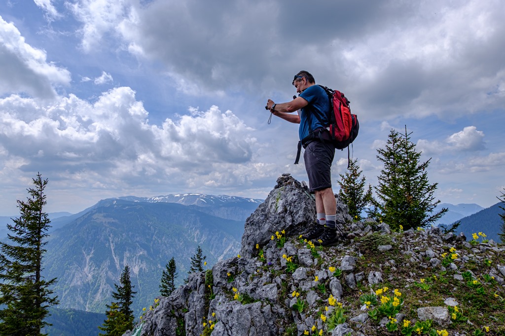 Egy lélegzetelállítóan nagy és legalább olyan változatos kerülővel próbáljuk Attilával behozni és feledtetni ama bizonyos „kór” okozta közel egy éves kényszerű szünetünket. Cirmivel együtt, hármasban indulunk Payerbach/Reichenau vasútállomás tágas parkolójából, hogy némi kerülővel jussunk fel a Schneeberg legérdemesebb darabontjára, a Krummbachsteinre.