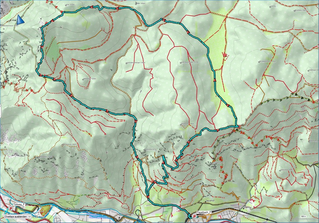 Az utat, jellegénél fogva, négy részre lehet osztani. Először is egy becsületes gatyarohasztó kaptató visz fel a Gahnsra, majd másodjára egy barangolás jön sík terepen, ezt követi a Krummbachsteinnek szentelt harmadik rész és a Knofelebentől számított ereszkedés a szurdokban a negyedik.