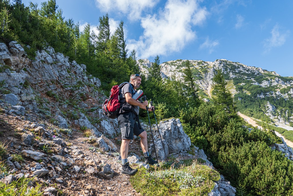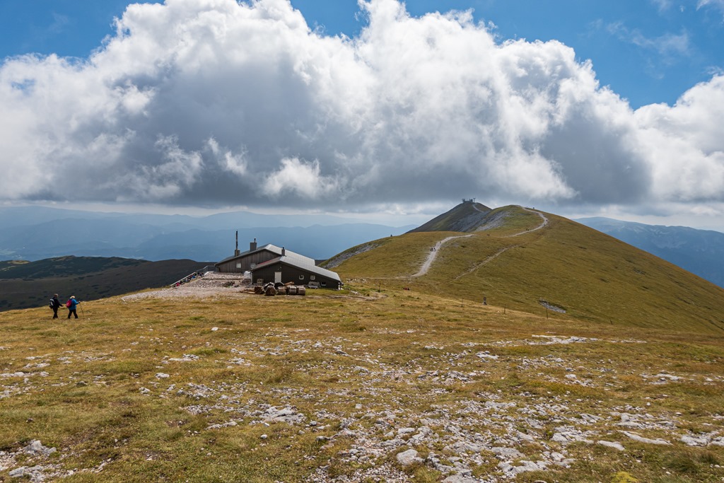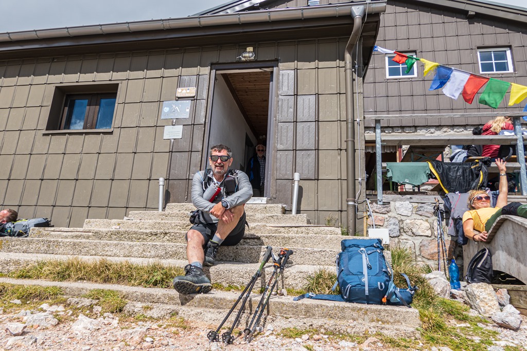 9:00 óra után néhány perccel kezdjük meg aznapi menetelésünket. Az idő kellemes, napos, itt-ott kúsznak ártalmatlan pára felhők az égen. Először felkaptatunk az Edelweißhütte tövébe (9:50), ami éppen felújítás miatt zárva van. A gazda, asszonykájával éppen a napos teraszon kávézgatnak, és ki is szolgálnának bennünket, amennyiben szomjunkat kívánnánk oltani, de ez még korai.
