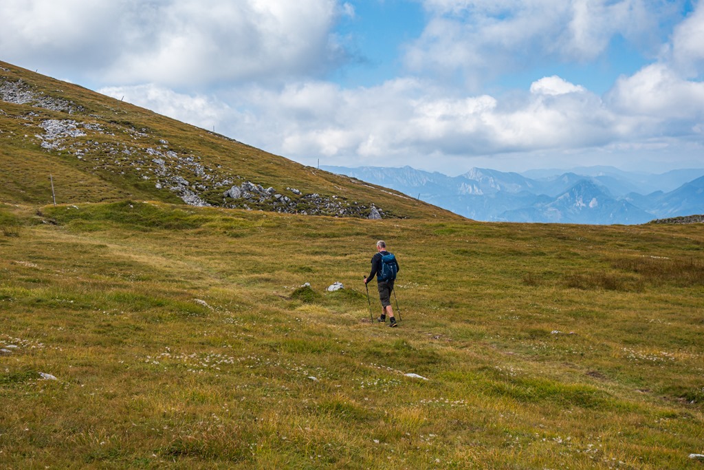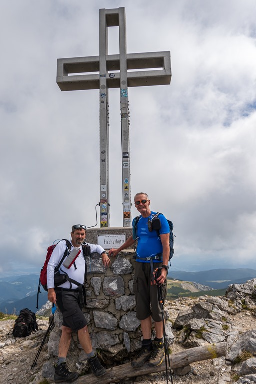 Időközben a páratenger beveszi a fennsíkot és kissé lehűl a levegő is. Mindezek ellenére a fűbe huppanva engedélyezünk magunknak néhány perc erő gyűjtést. Következik az unalmas befejező kaptatás a Fischerhütteig, majd elnézünk a Klosterwappenra (13:05) és vissza.