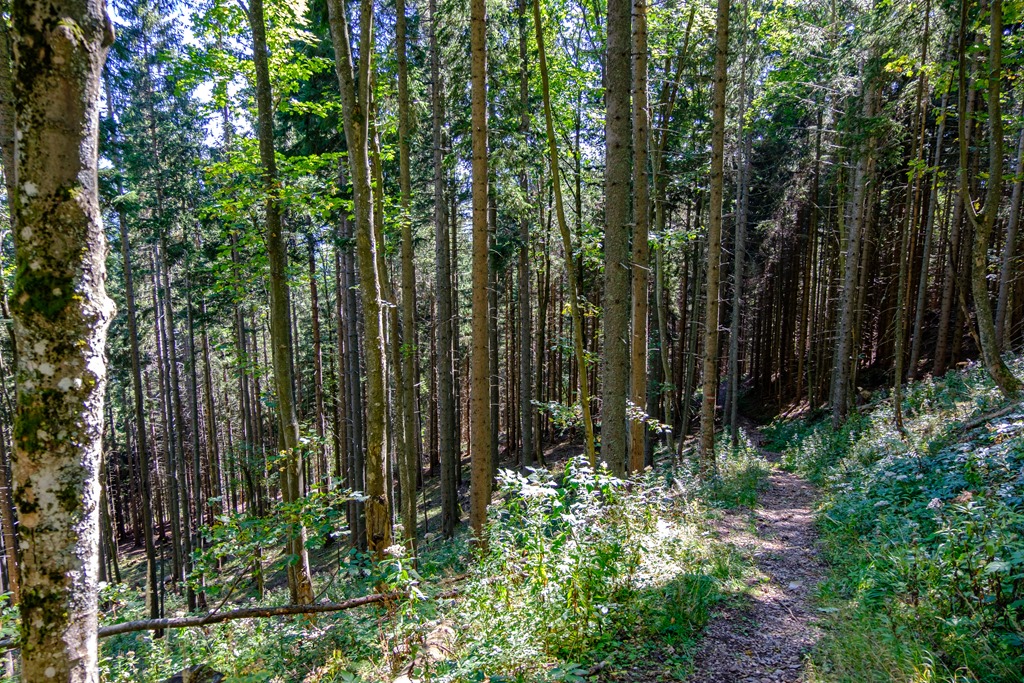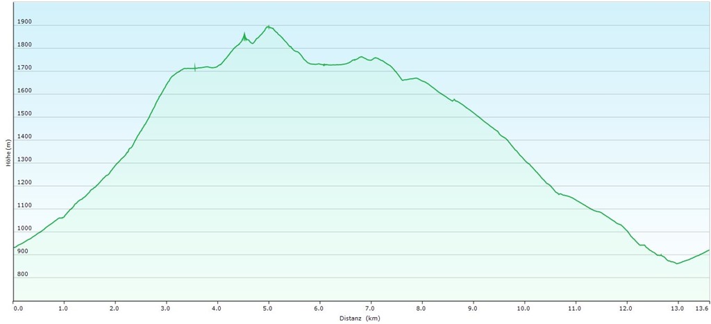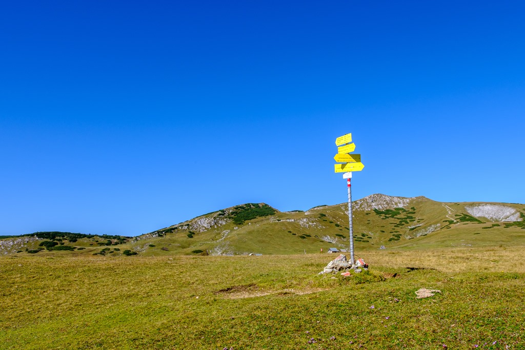 A fennsíkon nyaraló tehéncsordát már lehajtották a völgybe, csak pottyadékaik maradványai tanúskodnak itt eltöltött „szabadságukról”. Egyenesen áthágok a nagy mezőn, fel a két Windberg közti nyeregbe.