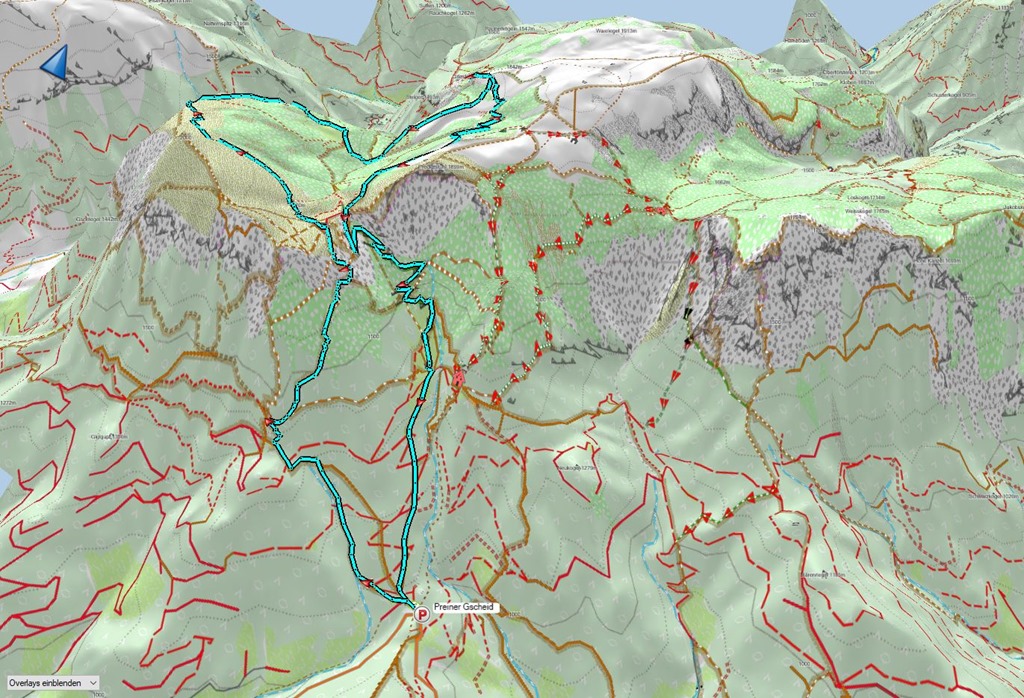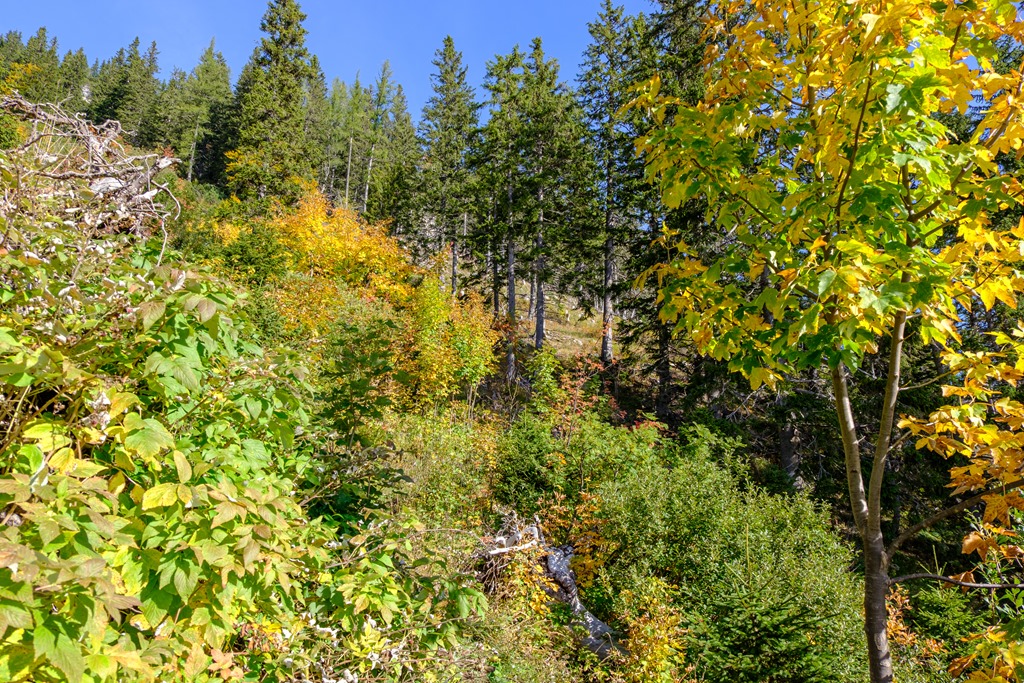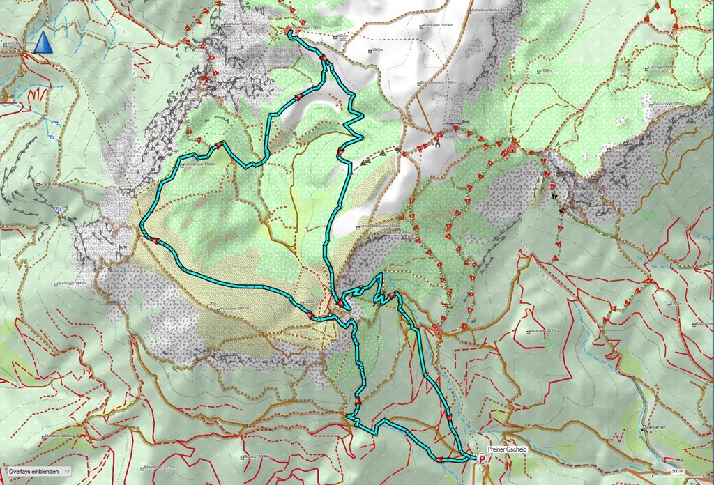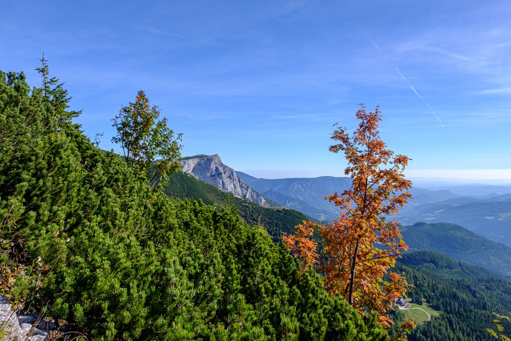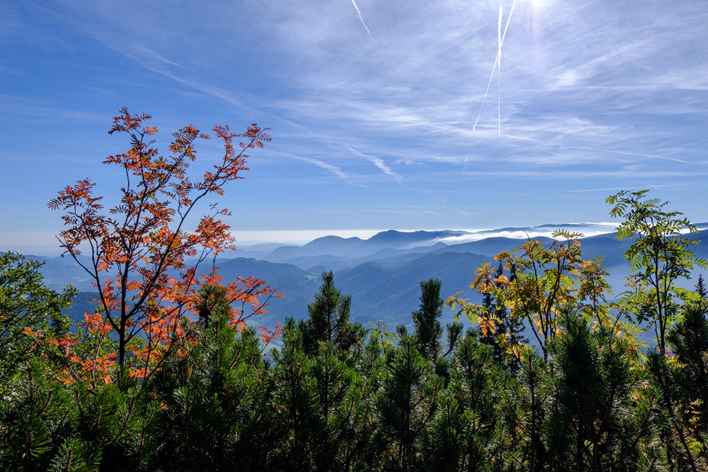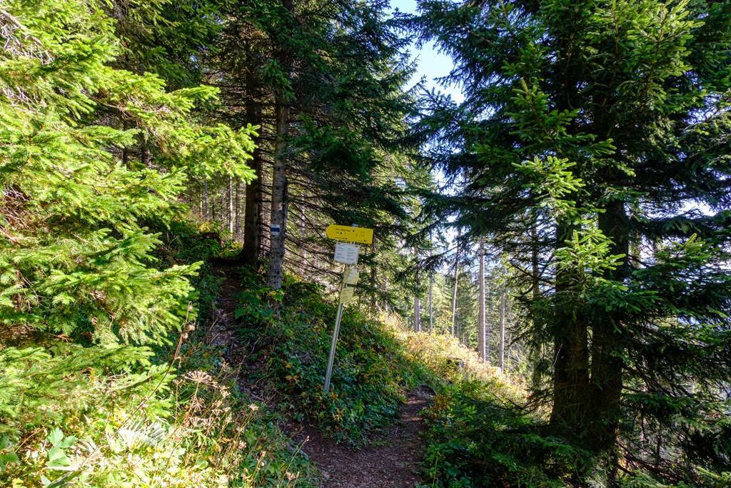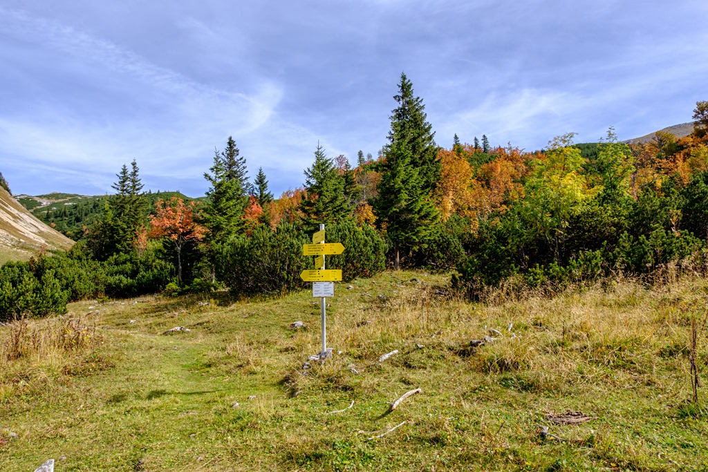 Mint az már lenni szokott, nem sokkal 9:00 óra előtt vágom magam haptákba, hogy nekilendüljek Prenier Gescheidből. Szokatlanul nagy a tülekedés a parkolóban. Mintha fél Ausztria jusztból is ide tolongana. De ahogy bandukolok felfelé a Reißtalersteigen, úgy csitul a népek zsivaja. Mígnem, teljes magány és egyedüllét szakad rám. A Kontrussteigen hamarosan elérem ama kiszemelt letérőt (10:00, fenti kép), és gyermekded örömmel kezdem meg a teljesen ismeretlen turistaút felfedezését.