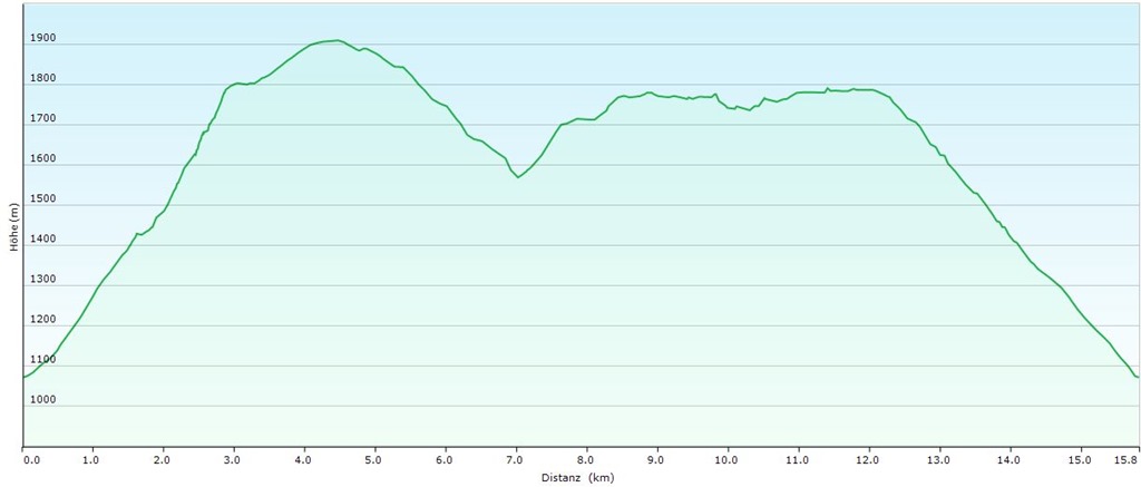 Cirka egy órás, gyengén emelkedő baktatással érkezem a Heukuppe túlsó, nyugati oldalára, ahol utam találkozik az Ochsenhaltweggel, mely észak-déli irányban fut a Habsburgház felé. Először lejt, át a Grasbodenalmon, majd tovább lefelé a Bärenlochsteig felé vezető elágazásig (12:20, fenti kép). Itt ismét kaptatósba fogja az út szalagja, hogy elérje a 200 méter szinttel feljebb lévő Habsburgházat (12:45).