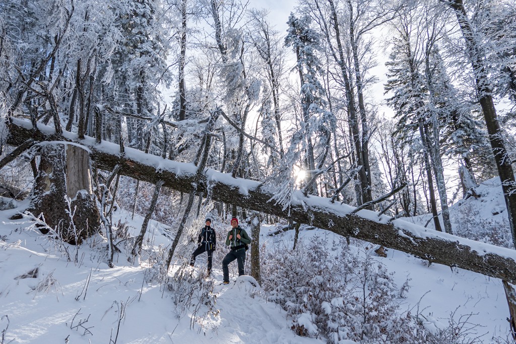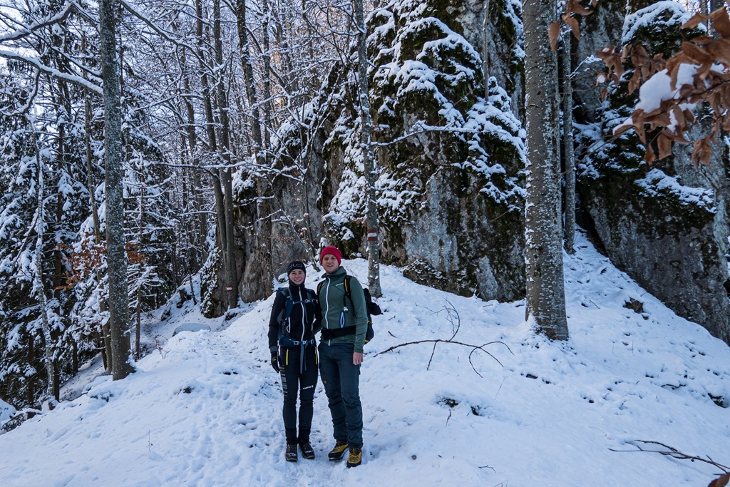 Lehet már fél tíz, amikor nekiveselkedünk a Jägersteignek (fenti kép). Hótalpakat nem viszünk, és bár ez nem kifejezetten rossz döntés, de helyenként azért kívántam volna a hasznukat.