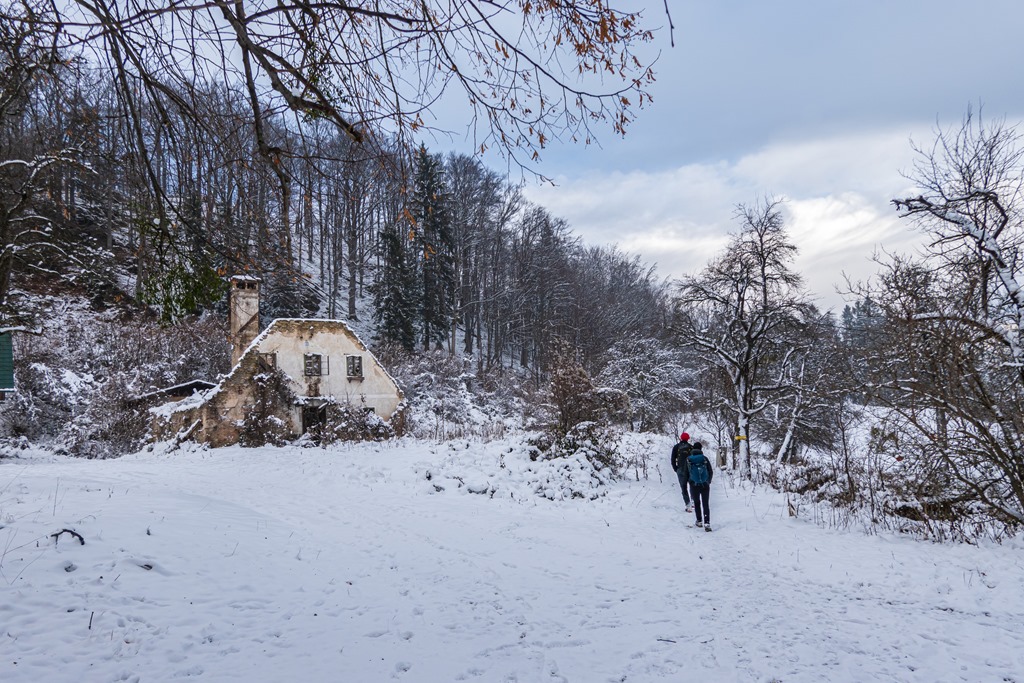 Az úgynevezett „Winterraum” egy szűk és sötét kis odú, de arra elég, hogy átöltözzünk és izzadt gönceinket lecseréljük. Van itt mindenféle ital is, fizetni becsülettel az önkéntes kasszába lehet. Eközben a gazda néhány komájával egyetemben serénykedik, odakünn a hóban próbálnak felállítani egy nagy kályhát, melegedni. A gyújtós, tűzifa már bekészítve. Nem várjuk meg a sikeres lánglobbanást, hanem rendre, éhségünket csillapítva indulunk vissza a völgybe. Tétlenül ácsorogva mégis csak vacogás az ilyesmi várakozás vége.
